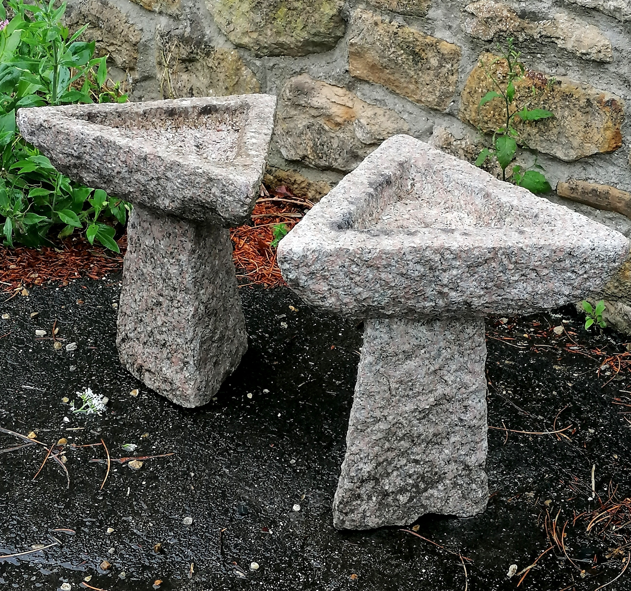 5019825. PAR UDSKÅRNE LYSERØDE GRANITTREKANTEDE FUGLEBADE.