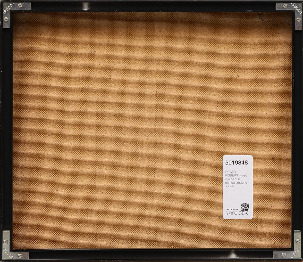 5019848. ROGER RISBERG. Hest, olie på lærred, monogram signeret.