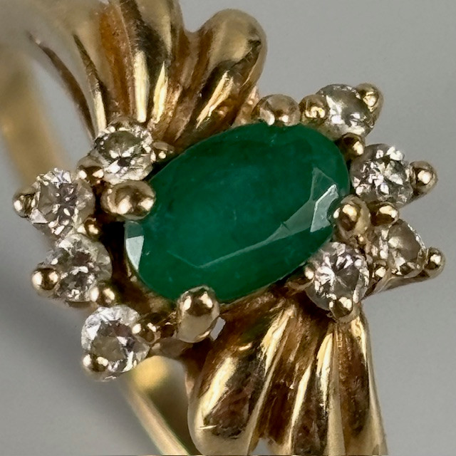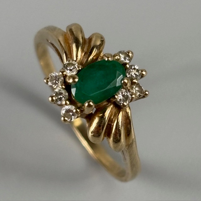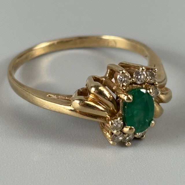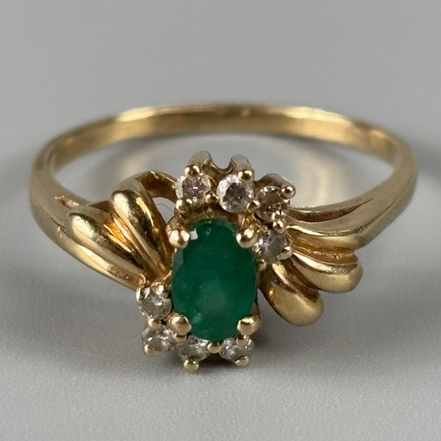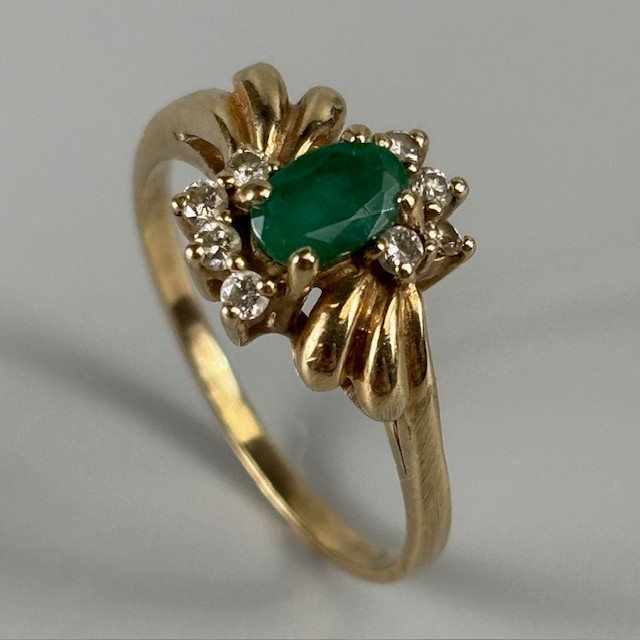 5021319. 9KT GULD 375 SMARAGD OG DIAMANT RING.