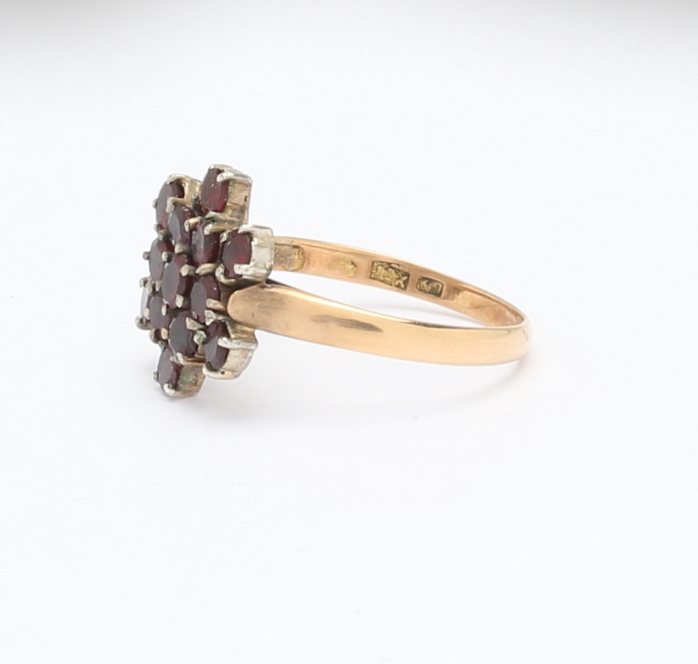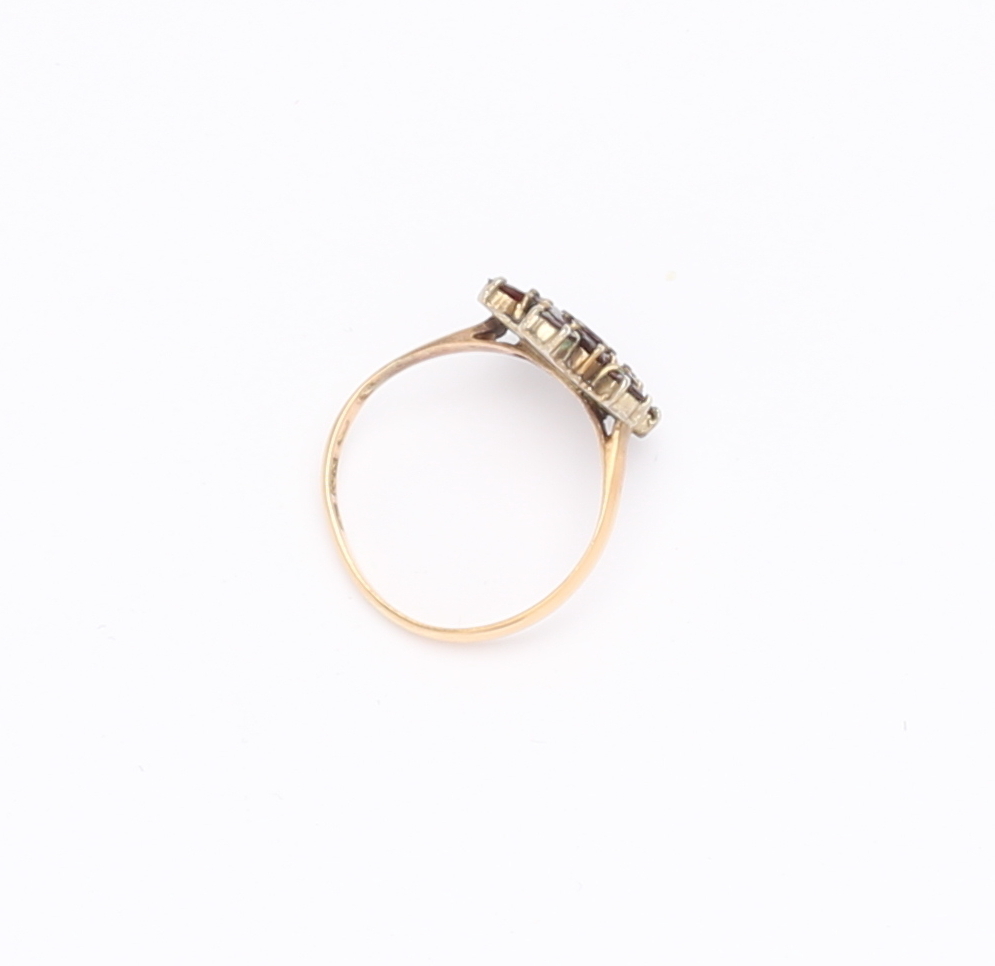 502282. RING, 18K guld og sølv, med granater. Samlet vægt ca 2,3 g.