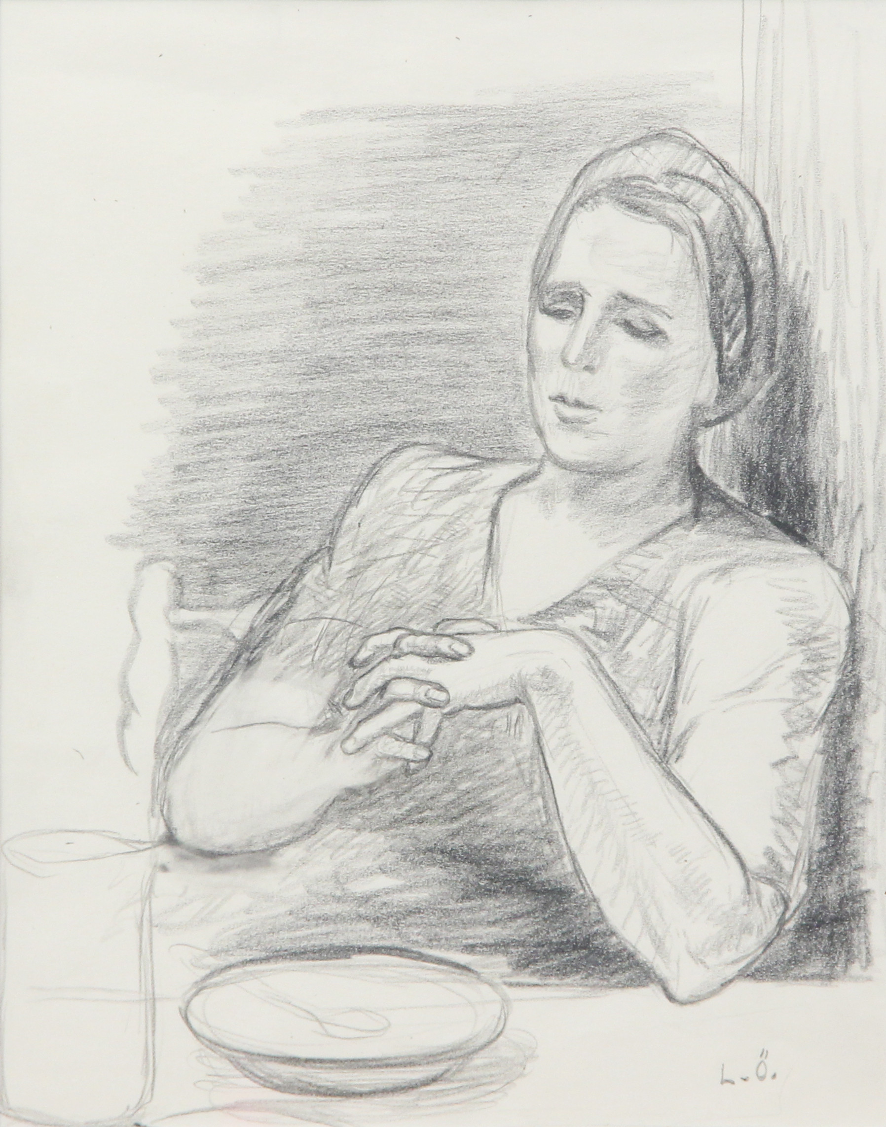 5023501. OIDENTIFIERAD KONSTNÄR. BLYANTTEGNING, signeret L Ö.