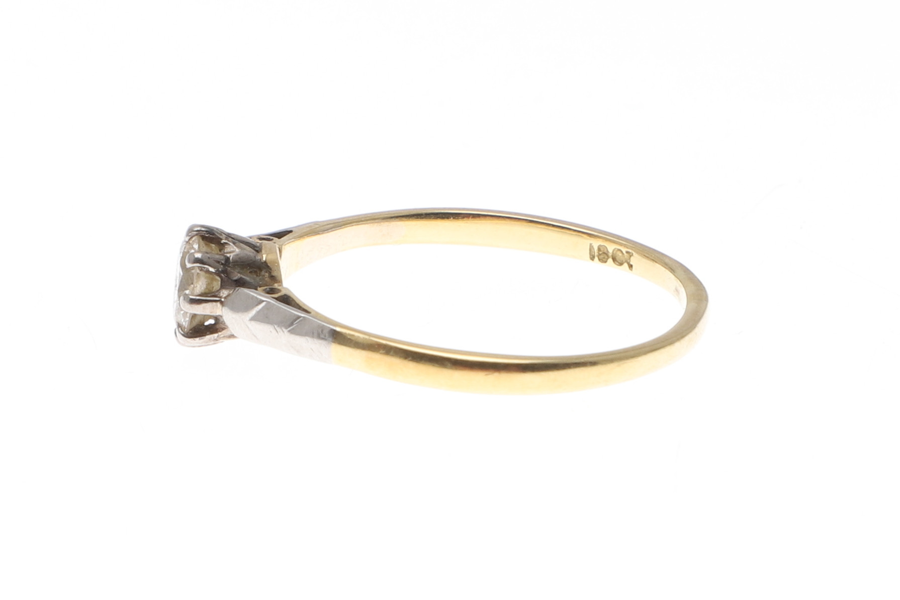 5029398. SOLITAIRE-RING I 18 KT. GULD OG DIAMANT.
