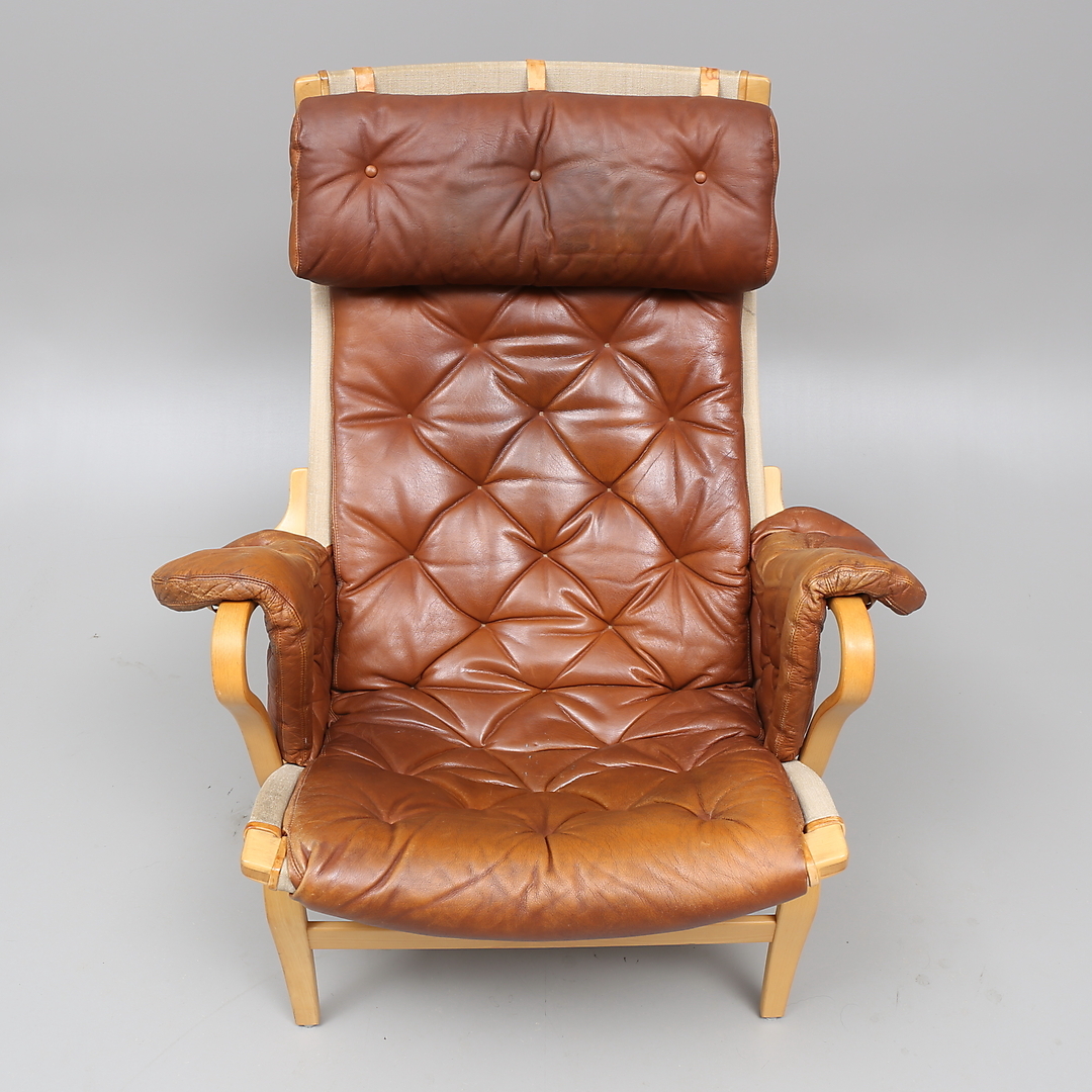 503227. BRUNO MATHSSON. Lænestol, læder, "Pernilla", DUX.
