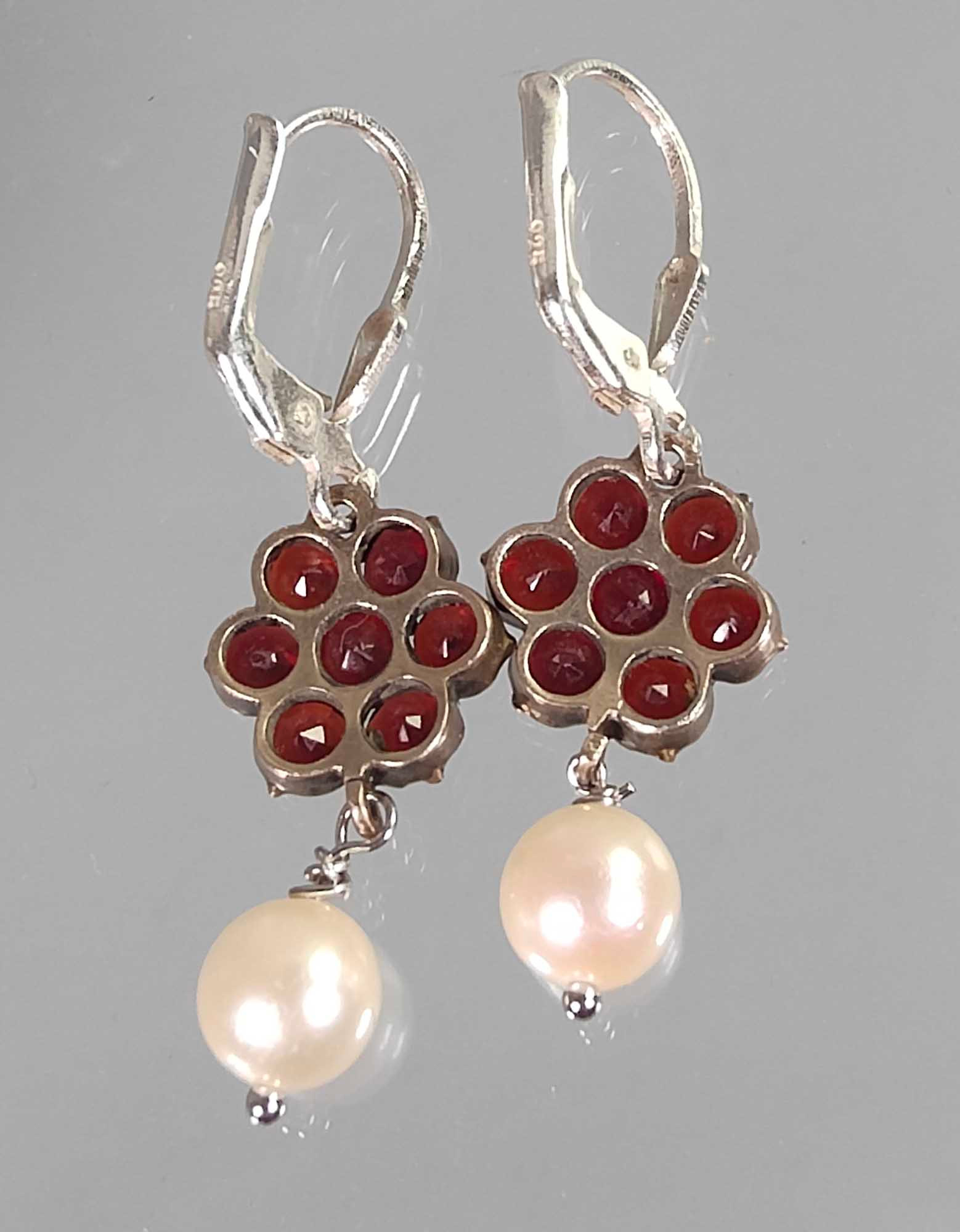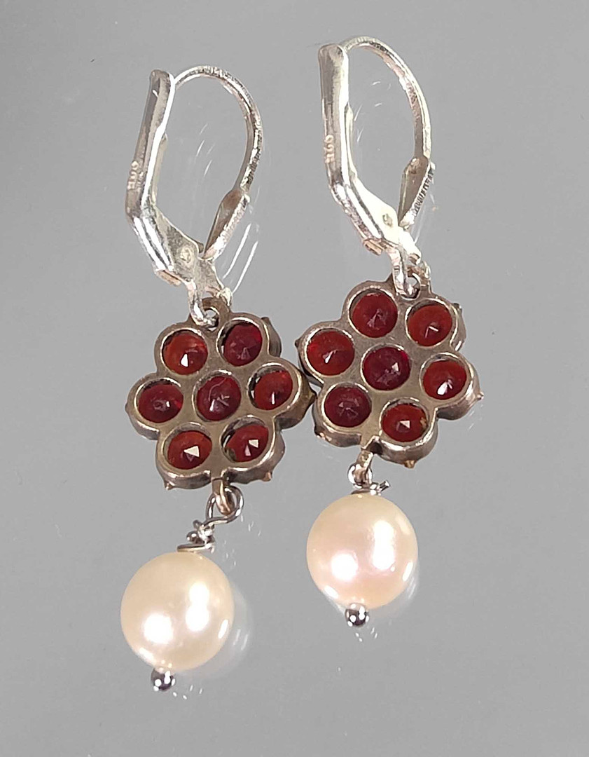 5034828. GRANAT-PERLE-ØRERINGE, sølv 925.