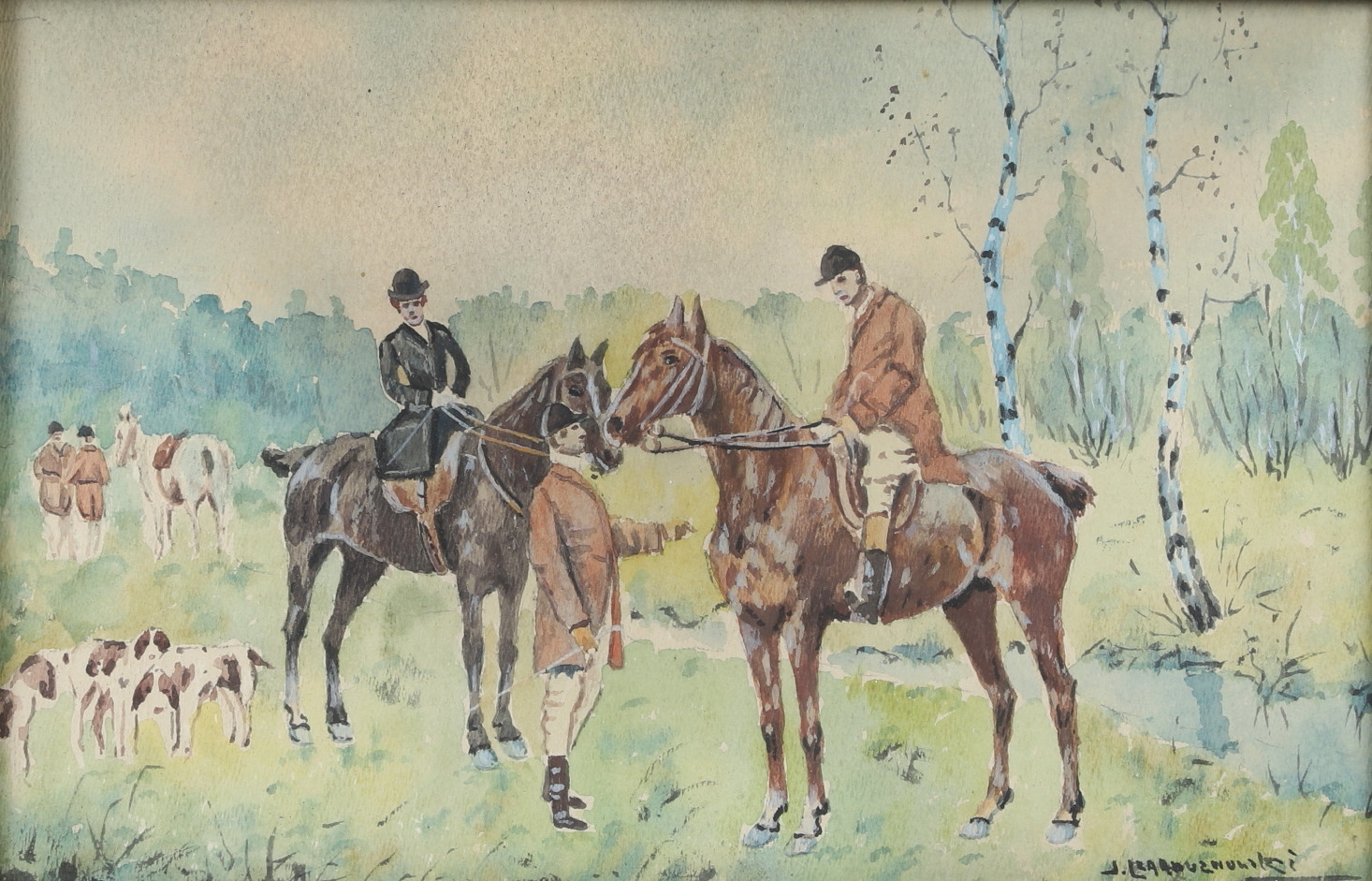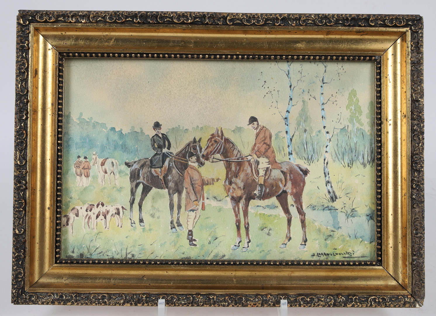 5036830. OIDENTIFIERAD KONSTNÄR. Akvarel, rytter, signeret.
