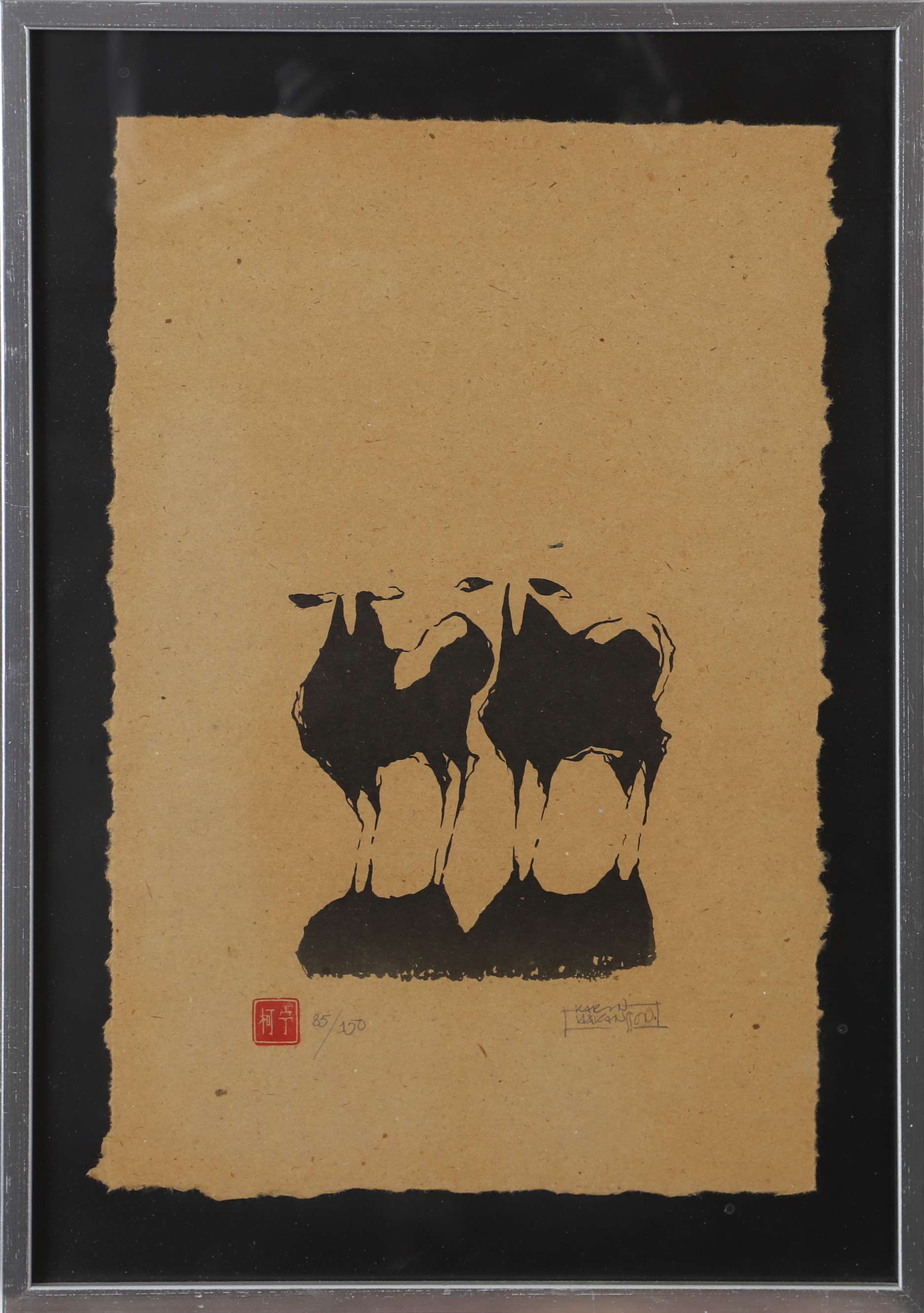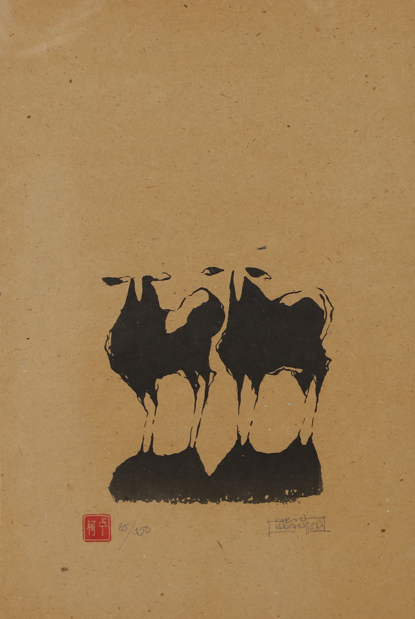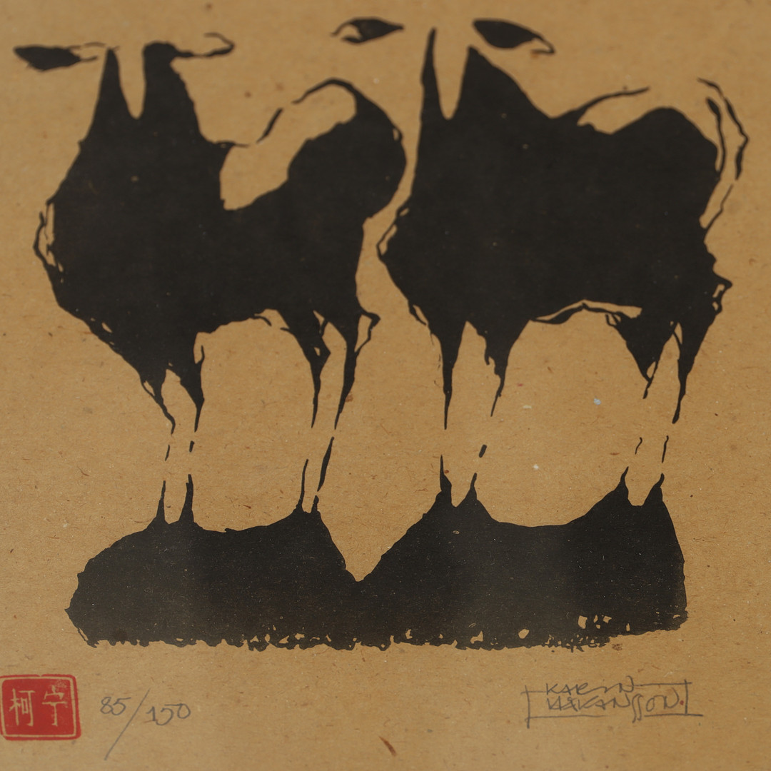 5045158. KARIN HÅKANSSON. Får, træsnit, signeret.