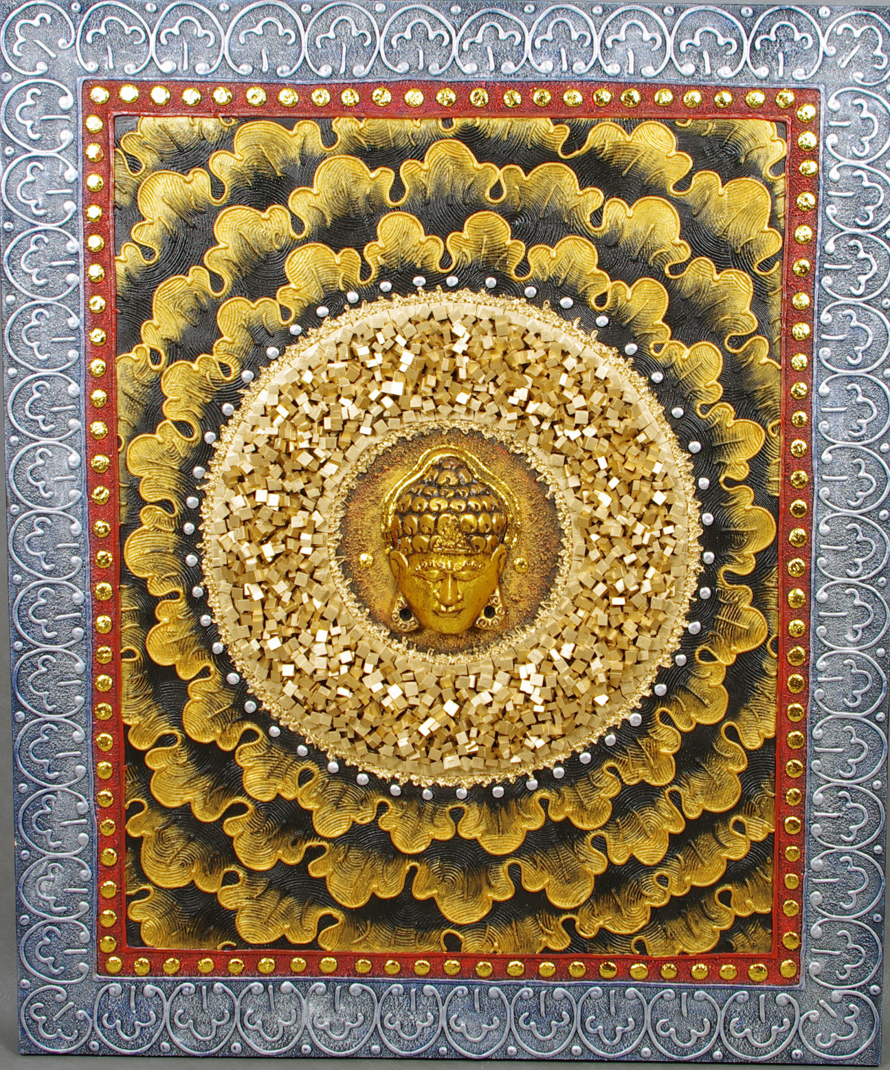 50543. VÆGRELIEF, forgyldt, Buddha-hoved, 2000-tallet.
