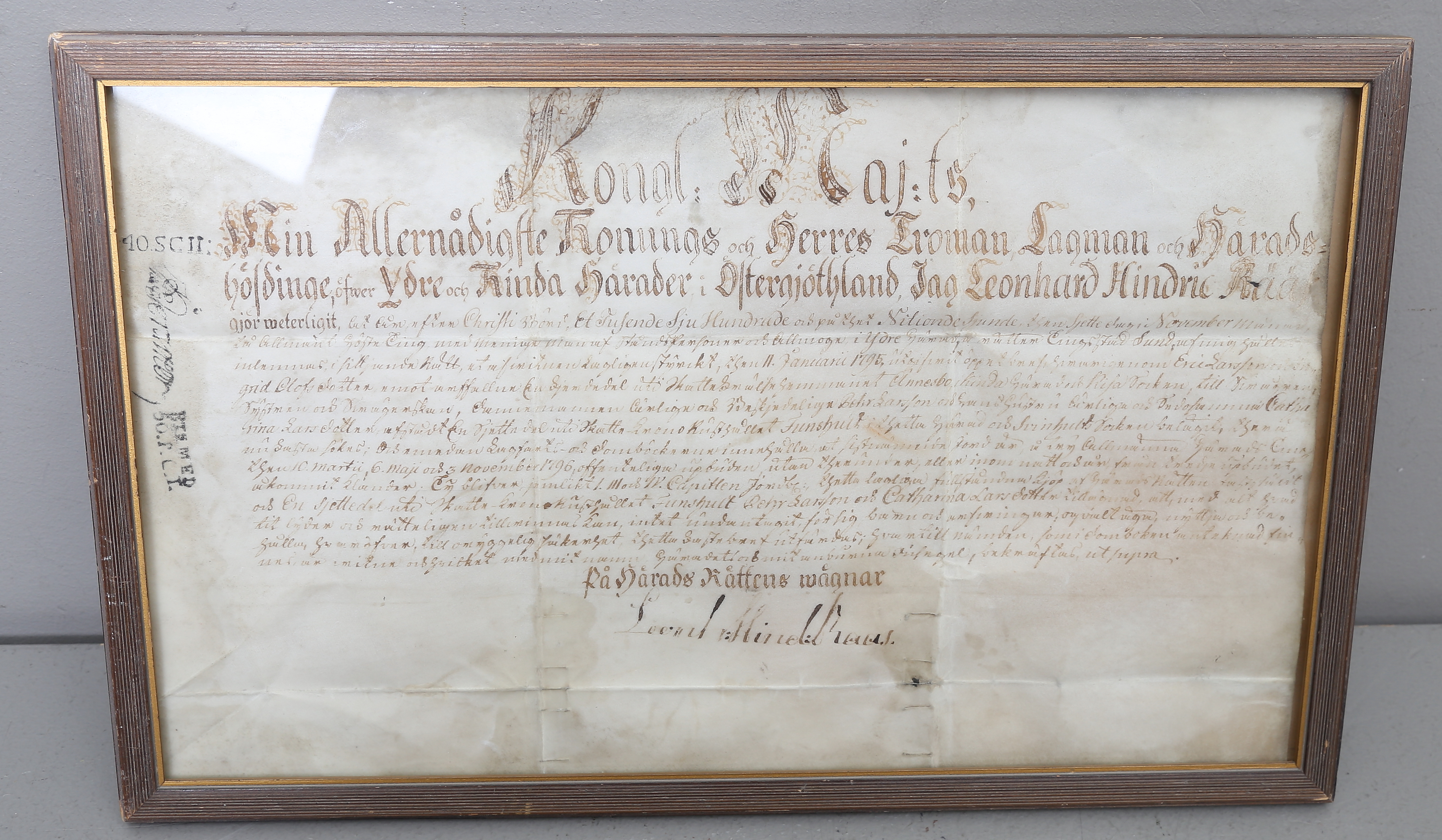 507603. PERGAMENTSBREV, Östergötland, Leonard Rääf, 1800-tallet.