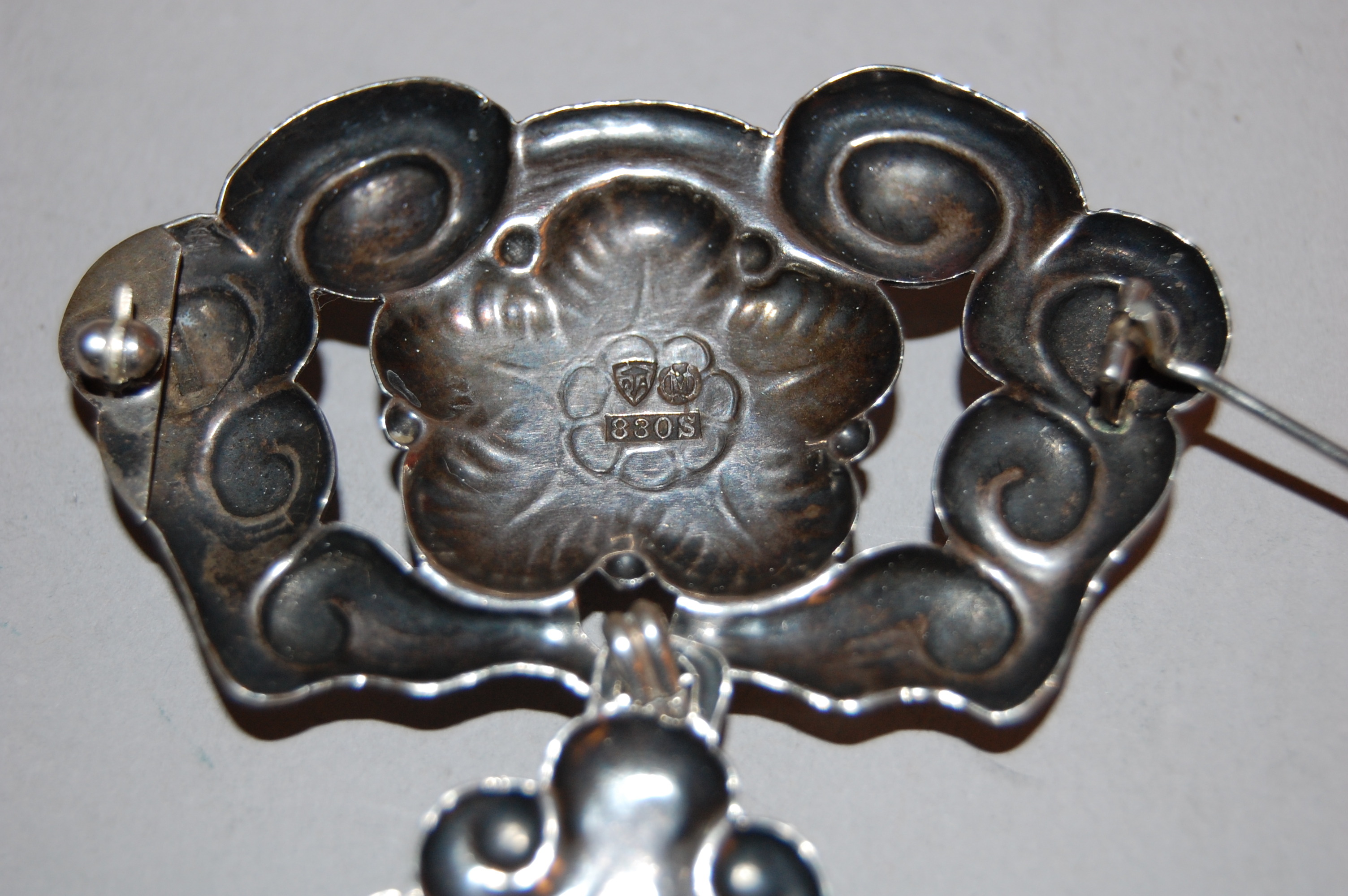 50842. BROCHE, sølv, rav, Danmark, begyndelsen af 1900-tallet.