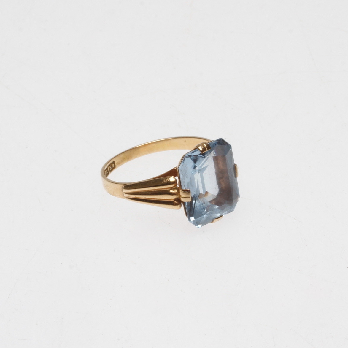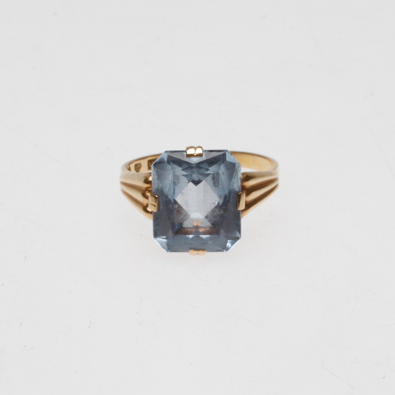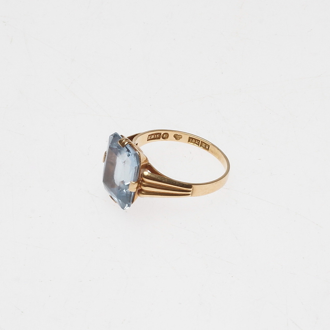 508718. RING, 18k guld med blå sten, vægt ca 3,2 gram.