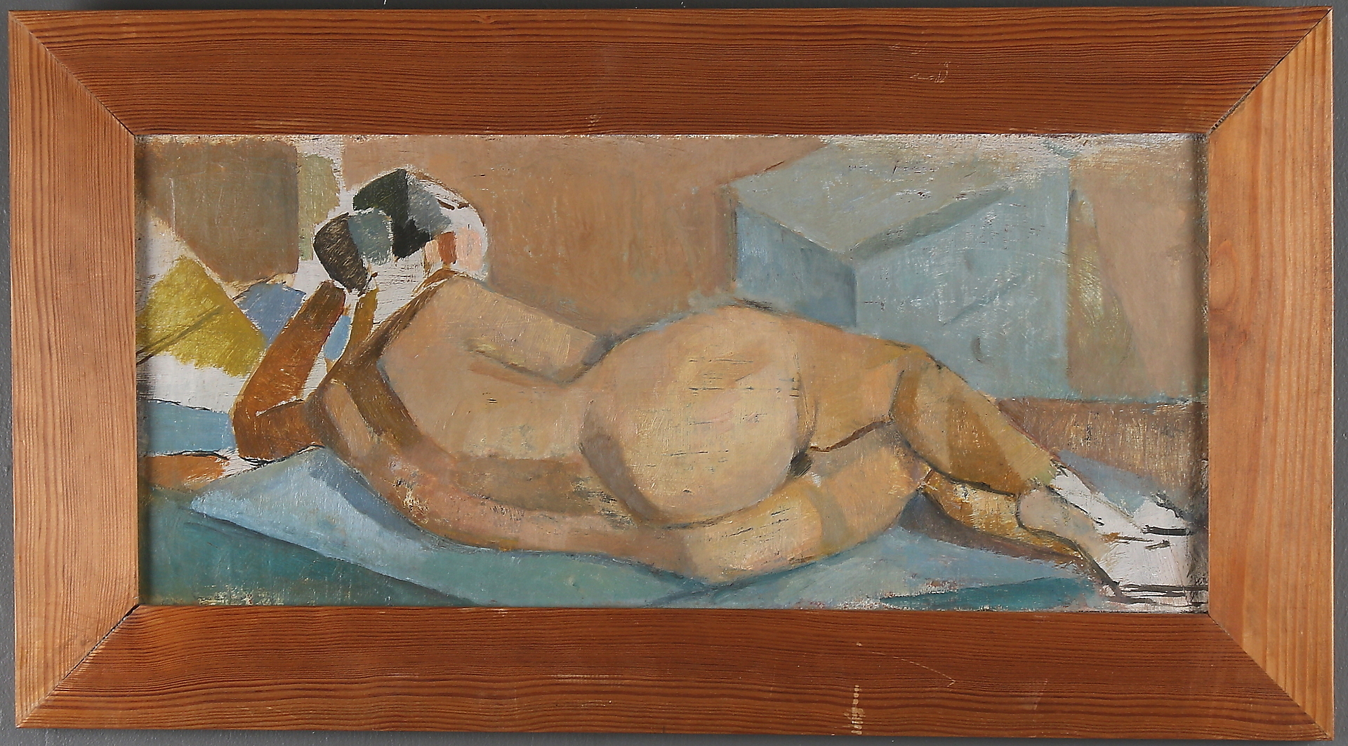 510457. OIDENIFIERAD KONSTNÄR. "Kerstin mod blå Kommode", usigneret.