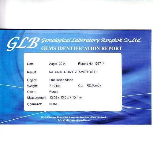 511439. AMETHYST, 7,10 CT. Lilla, certifikat.