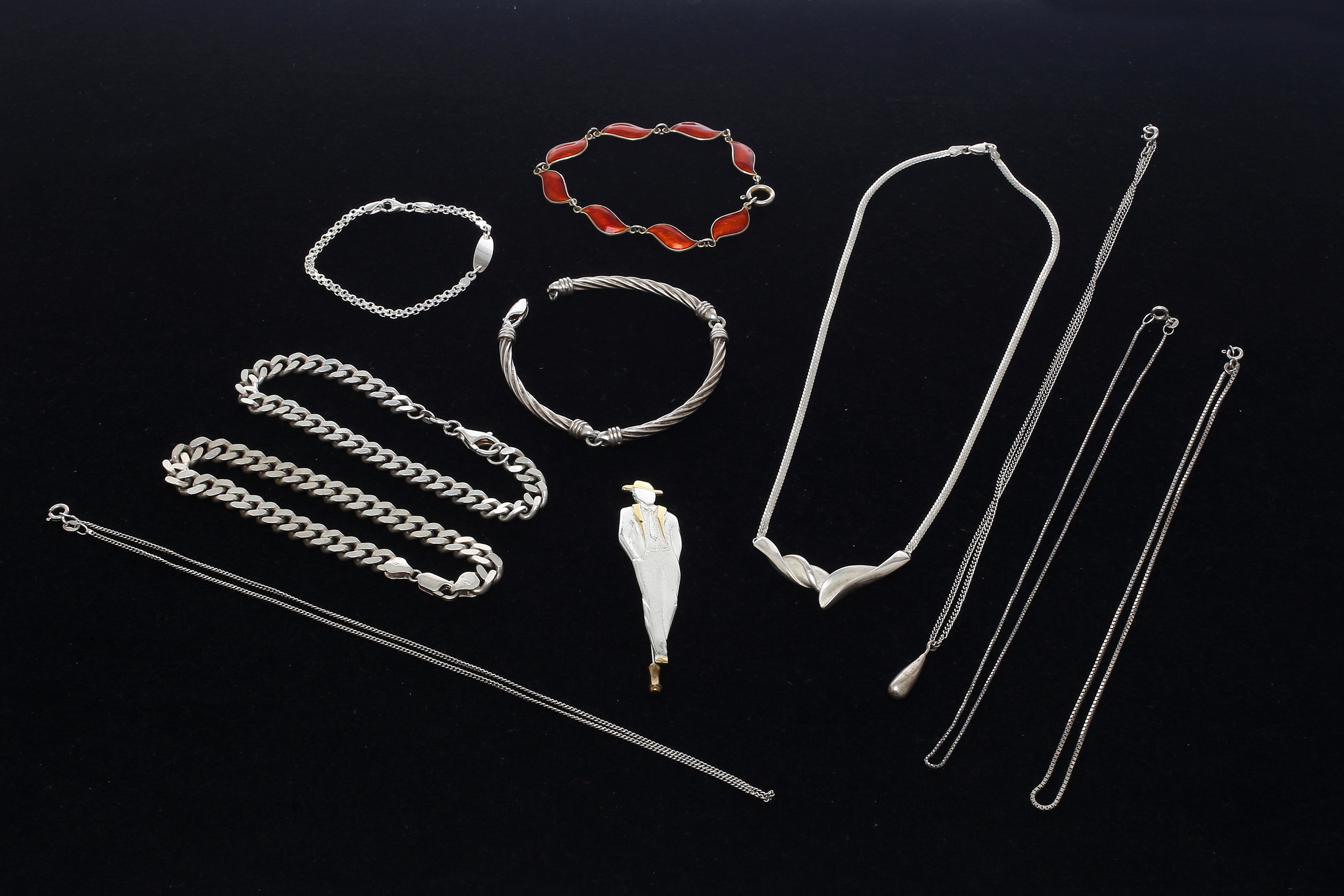 513403. SMYKKER, 11 dele, sølv, 1900-/2000-tallet.