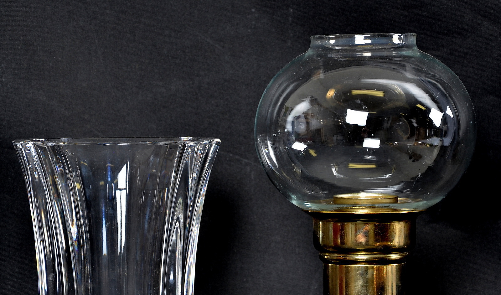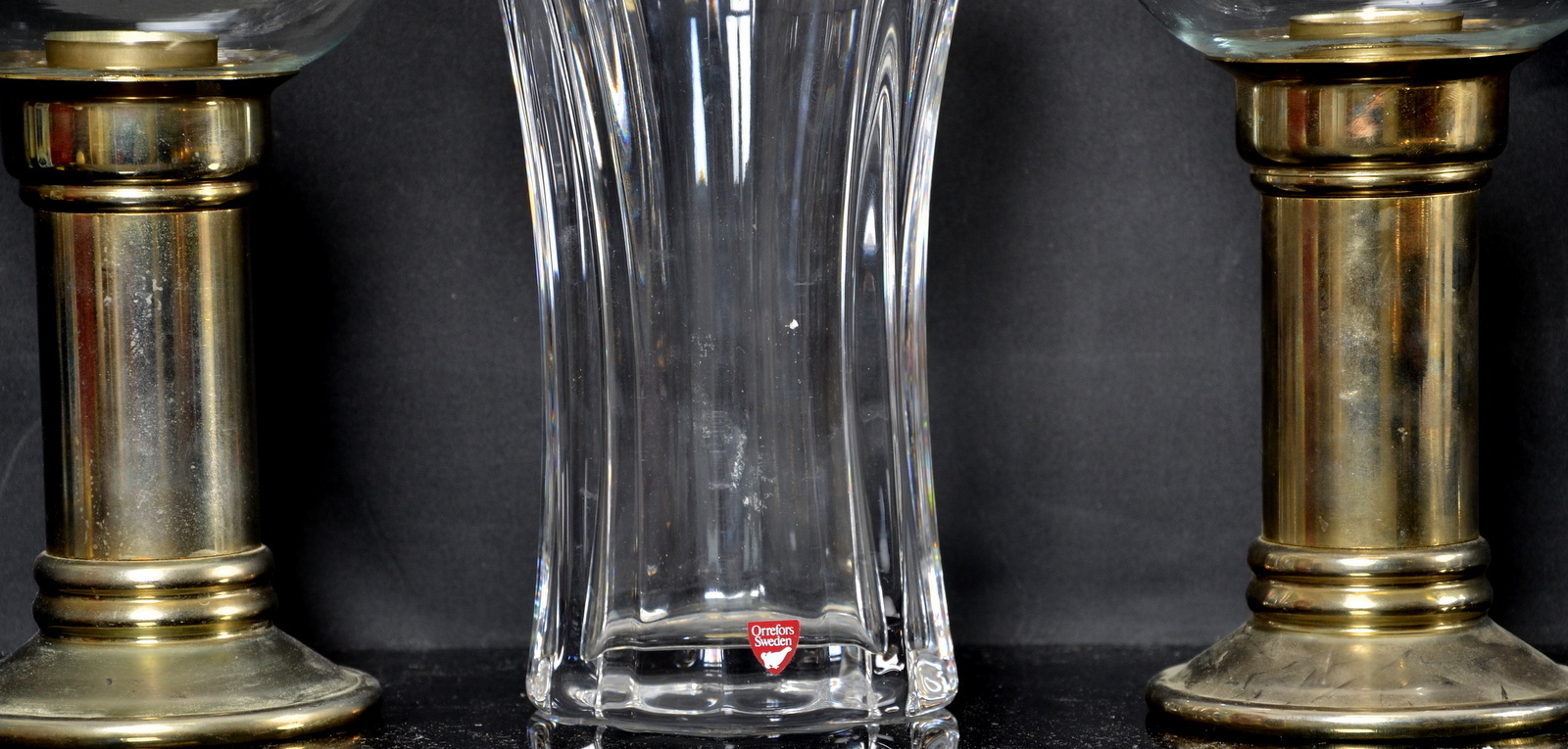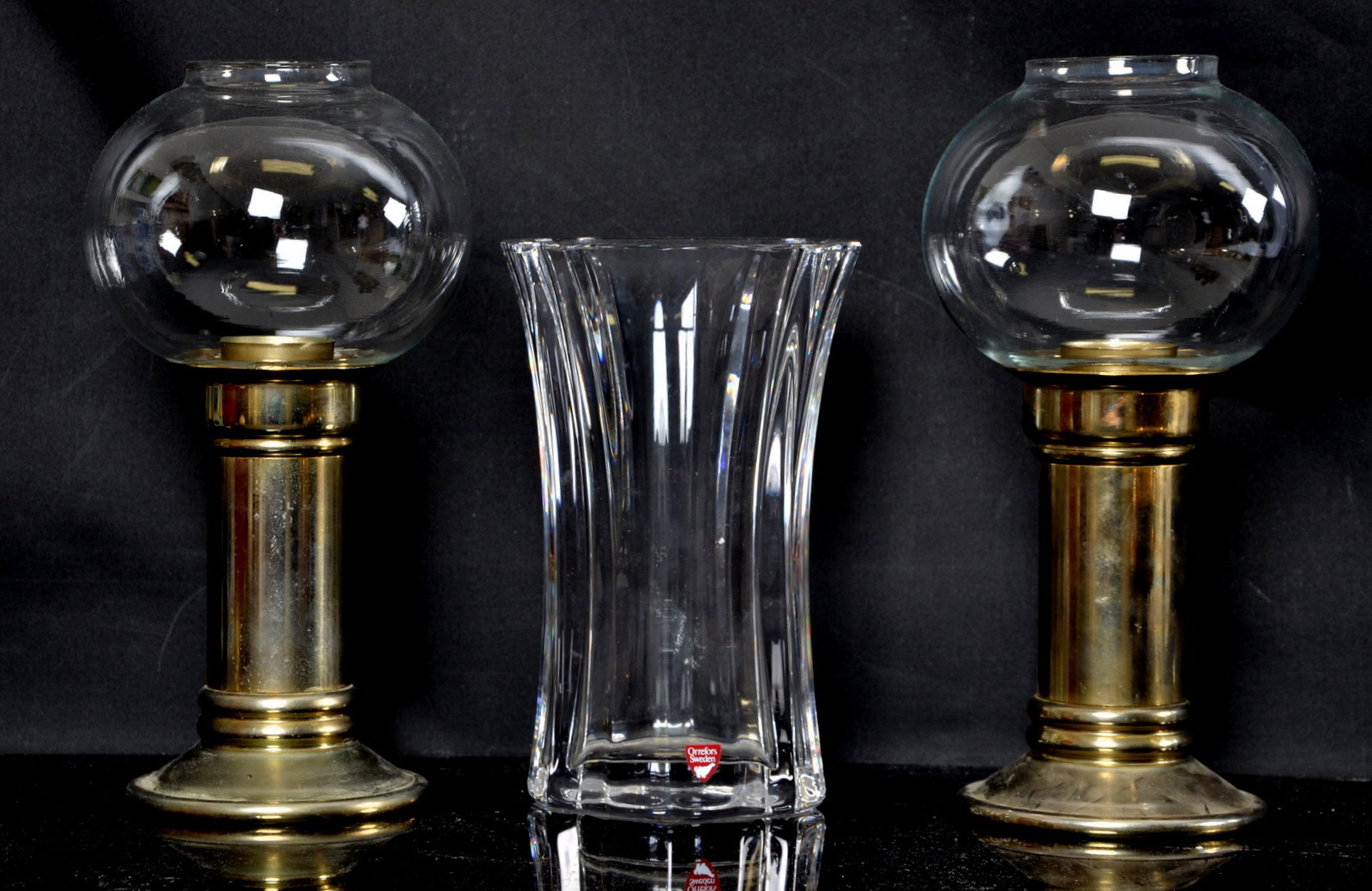 515010. VASE OG LYS LANTERNE, 3 dele, bl.a. Lars Hellsten, Orrefors.
