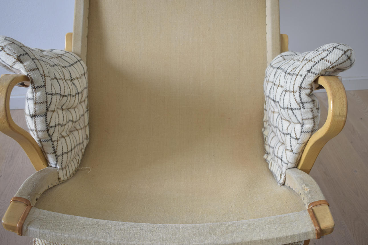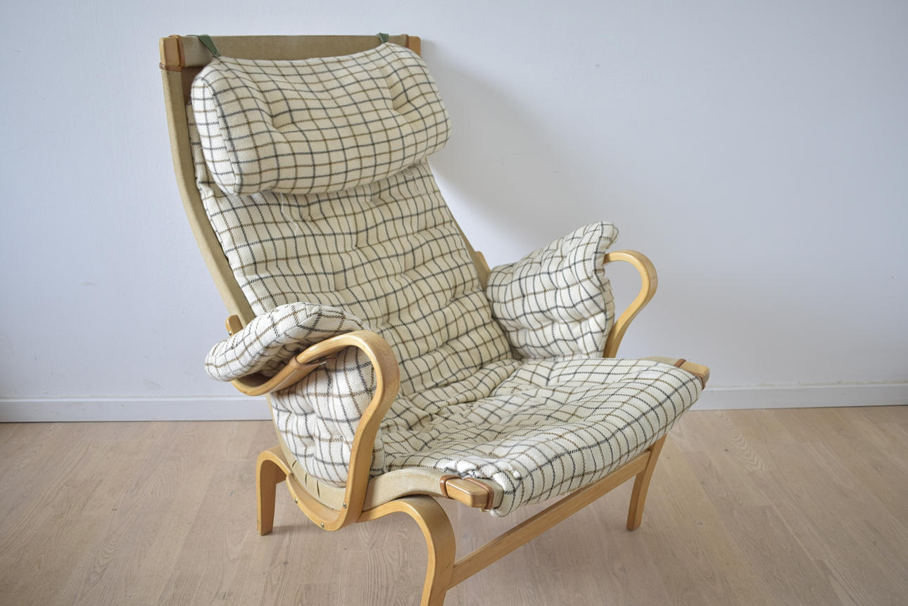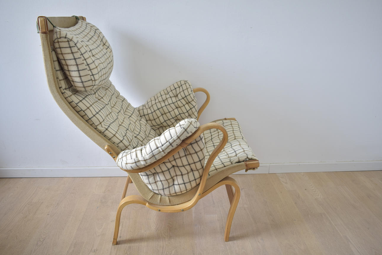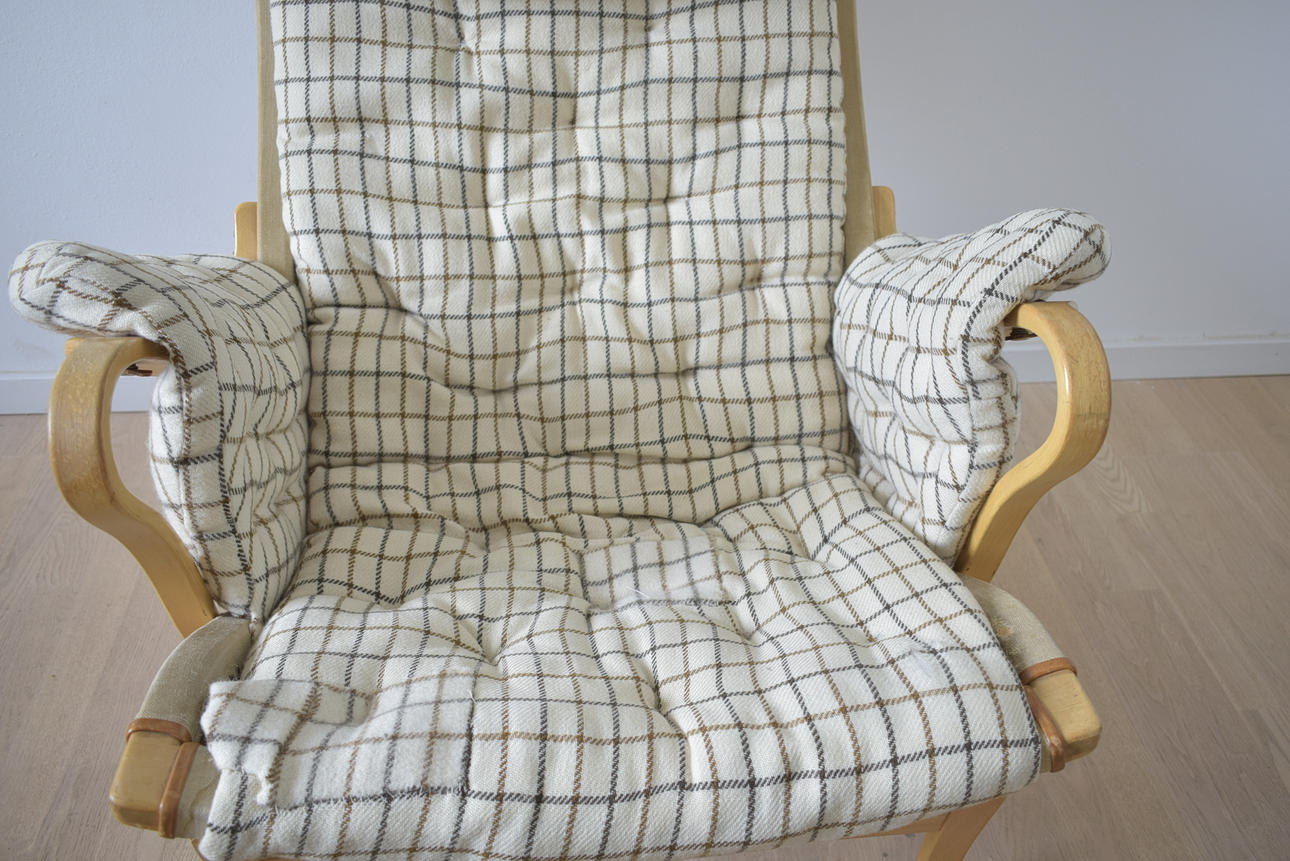 Pernilla designet af Bruno Mathsson, i klassisk ternet stof.