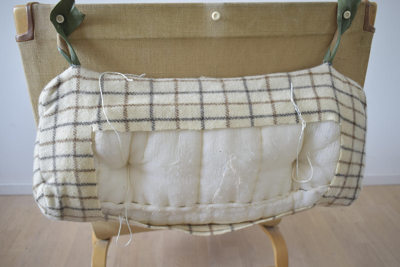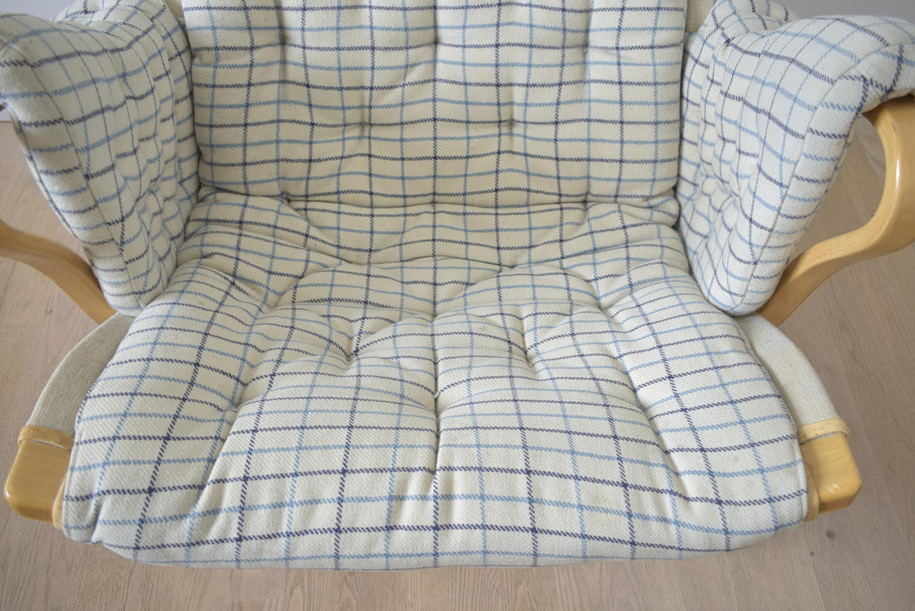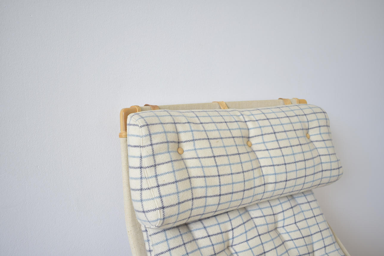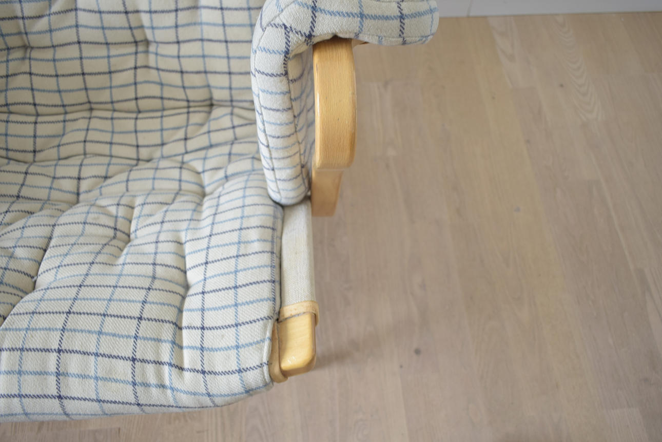 Pernilla designet af Bruno Mathsson, i klassisk ternet stof.