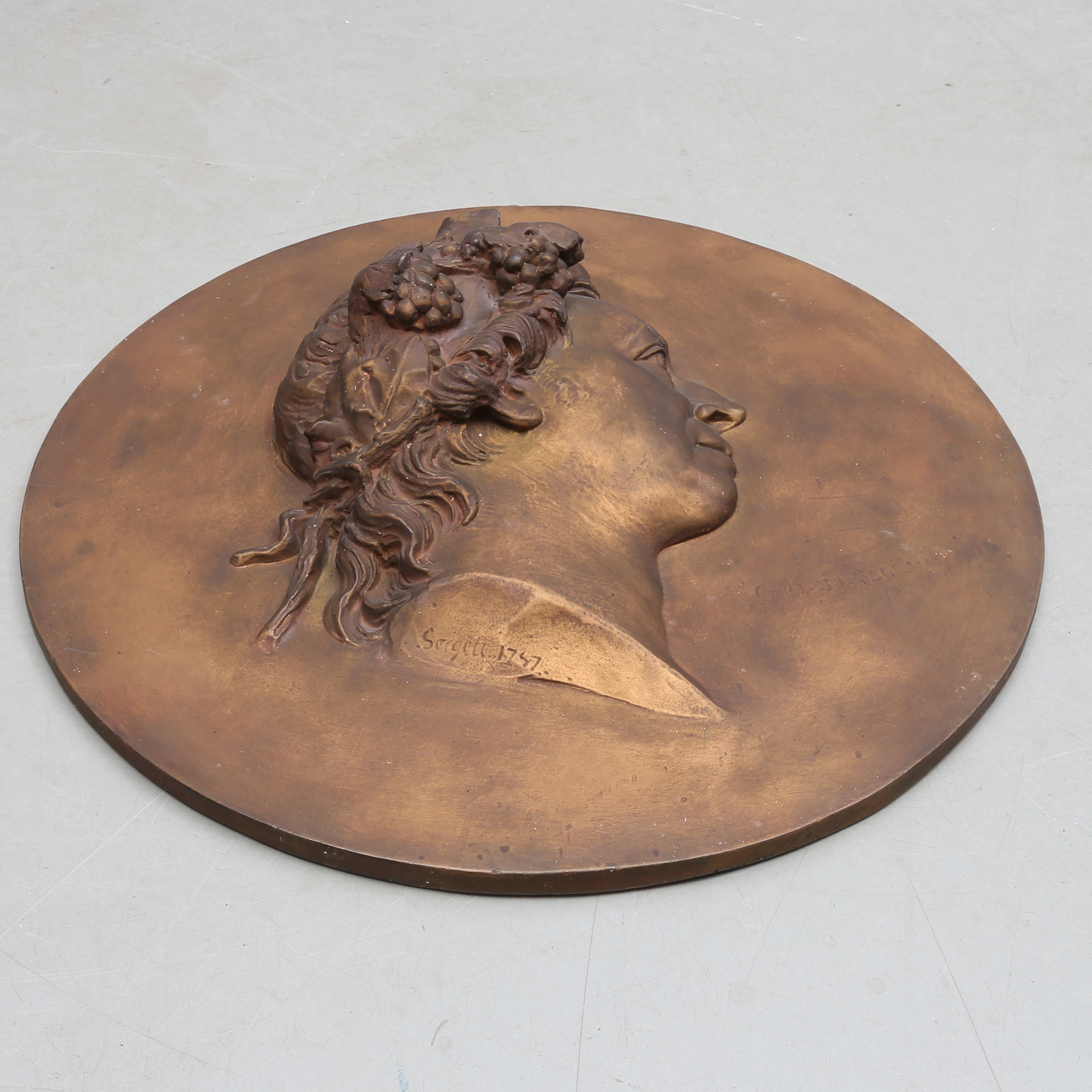517743. VÆGRELIEF, bronzeret gips, Bellman efter Sergel, 1900-tallet.