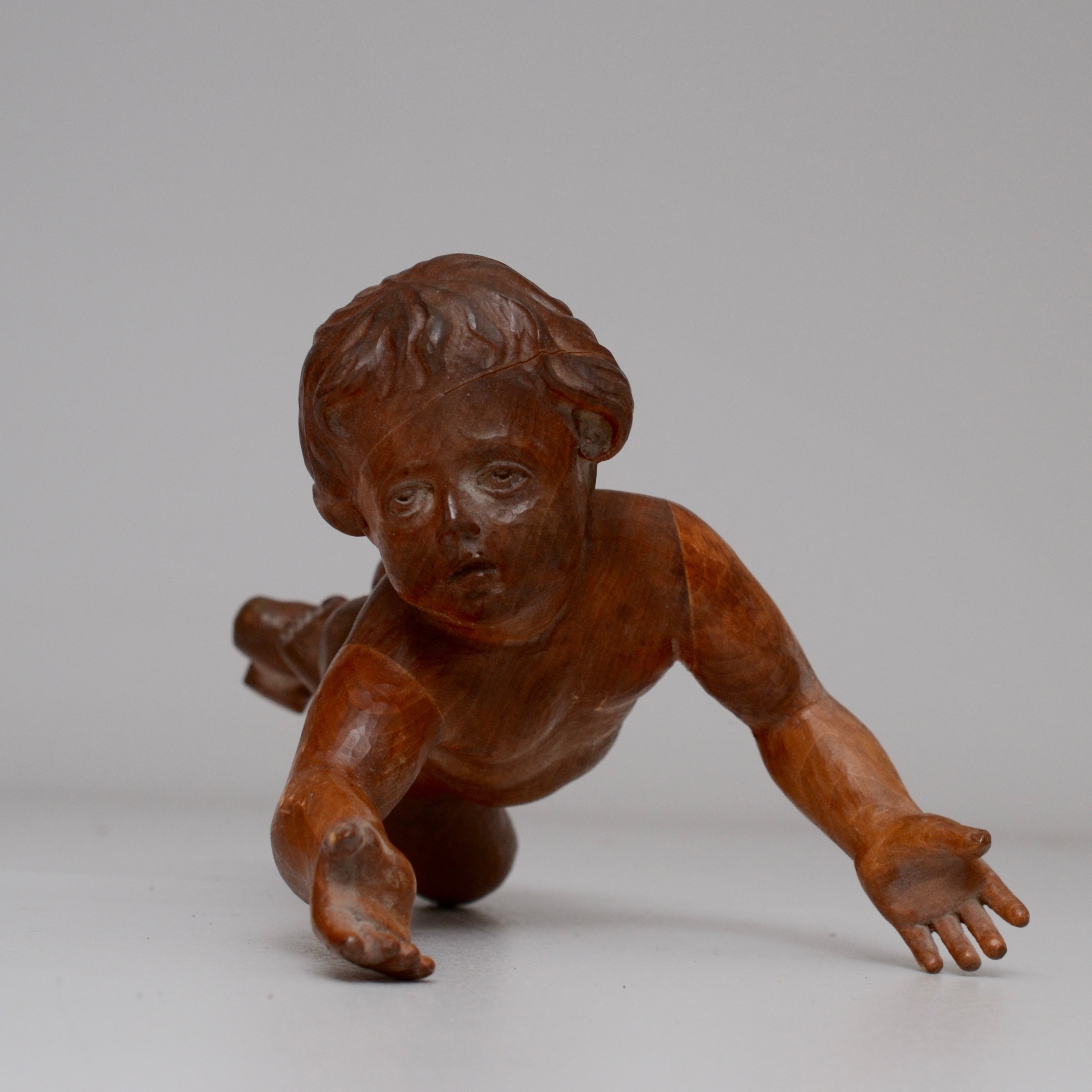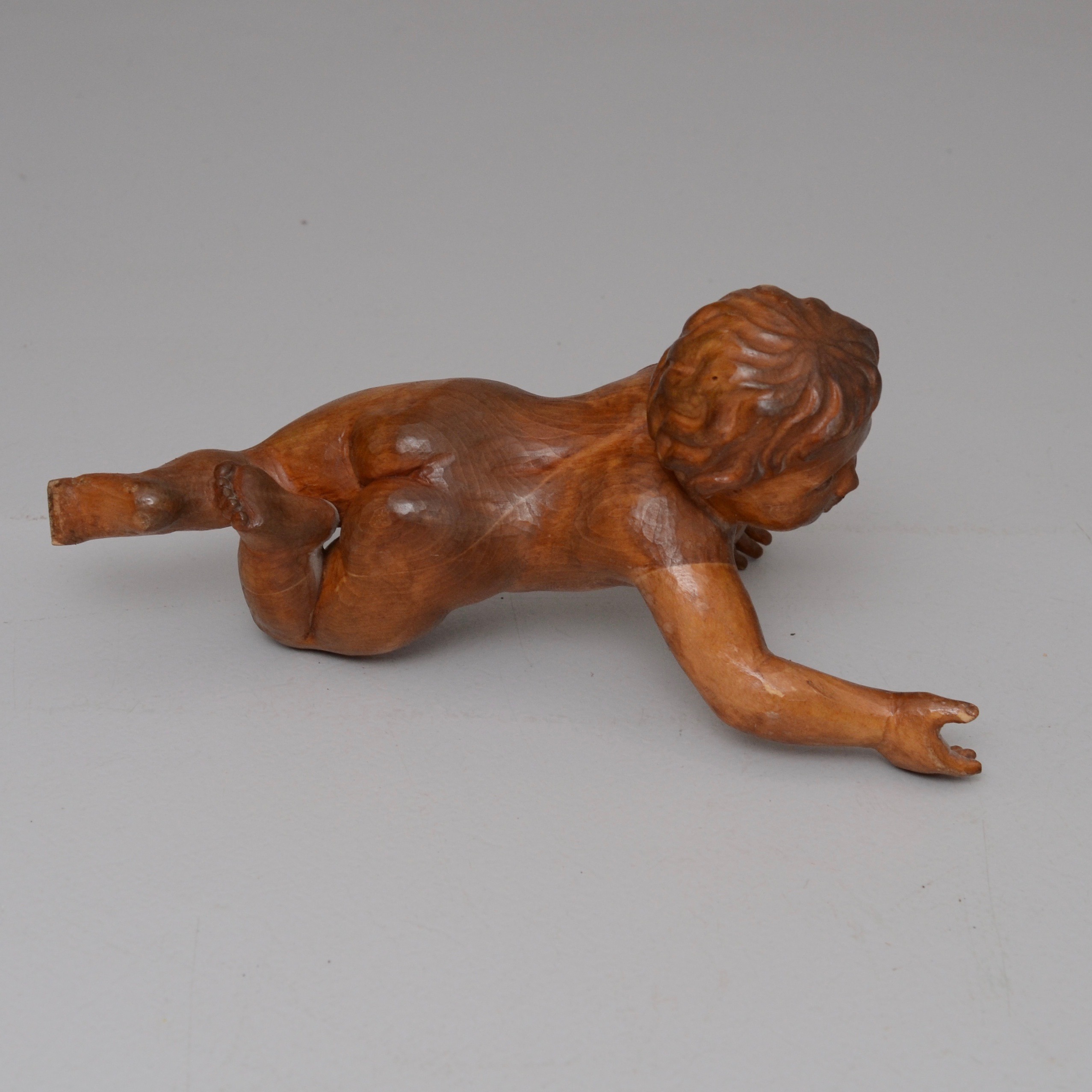 518464. FIGUR, ENGEL, udskåret i træ, antik.