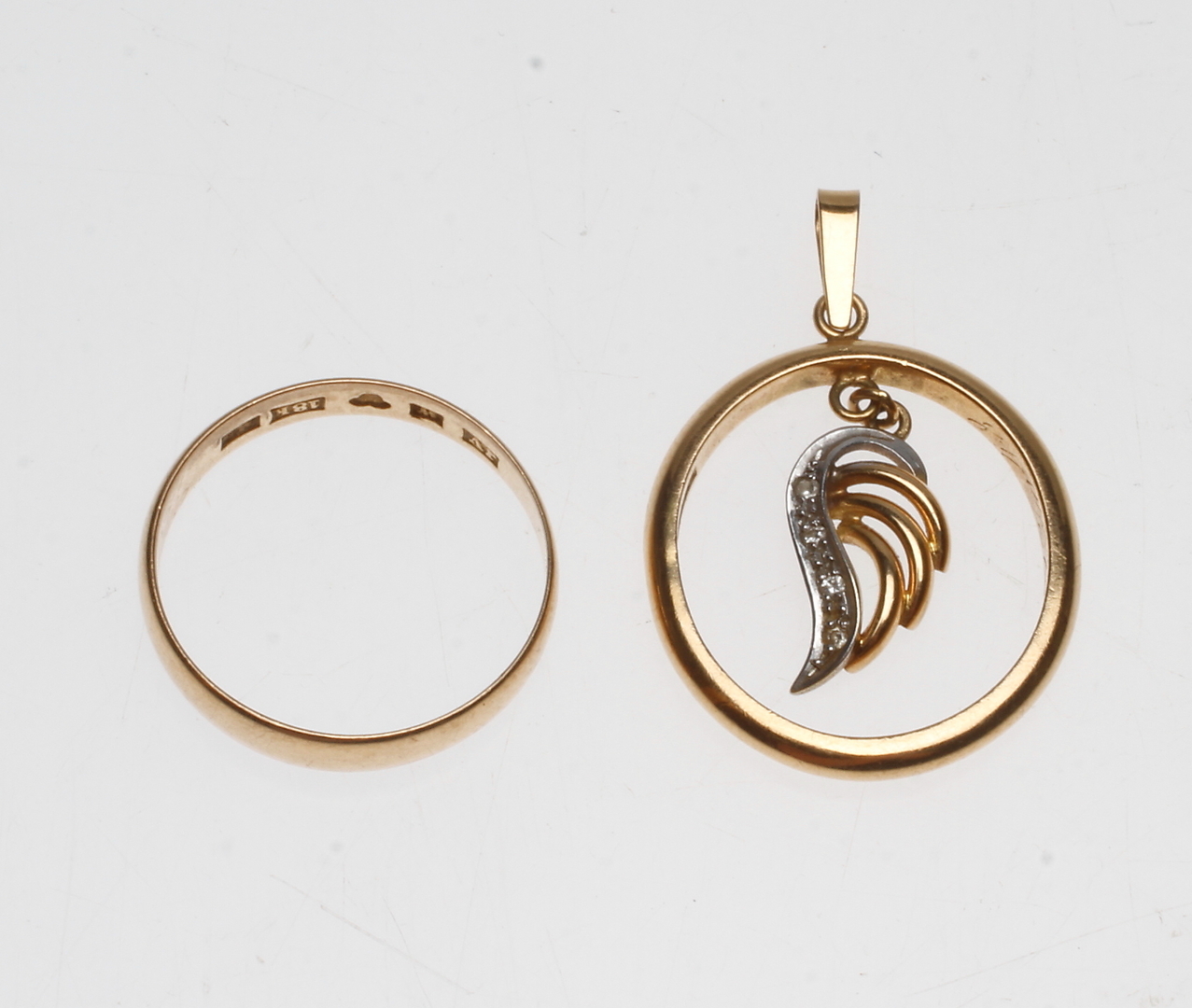 519292. RING OG VEDhæng, 18k guld, vægt ca 8,2 gr.