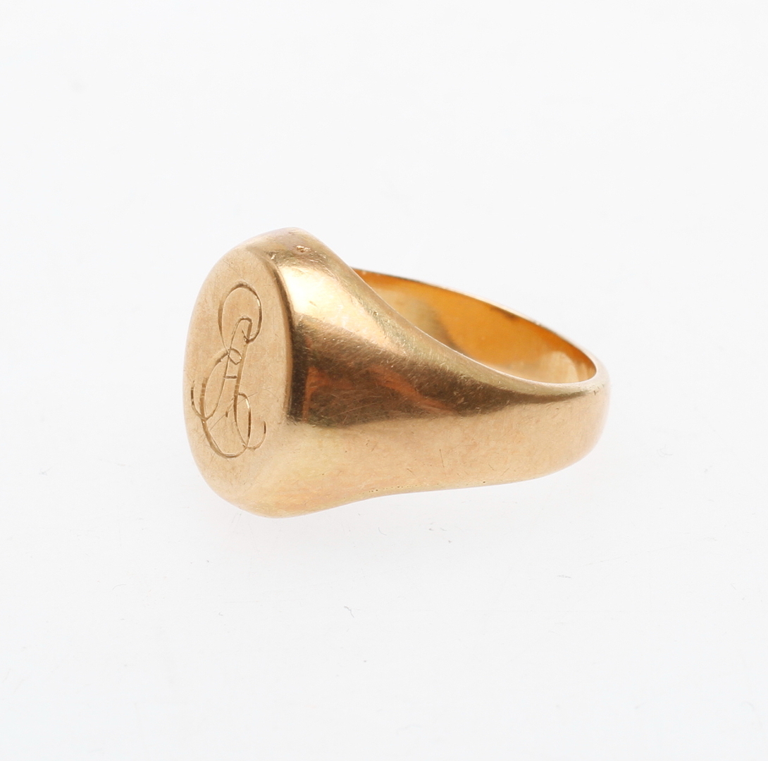 51943. Signetring, 18k guld, vægt ca. 9,3 gr.