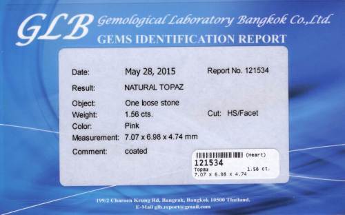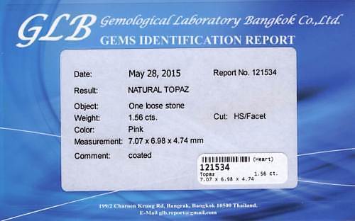 519600. TOPAZ 1,56 CT. Pink, certifikat.
