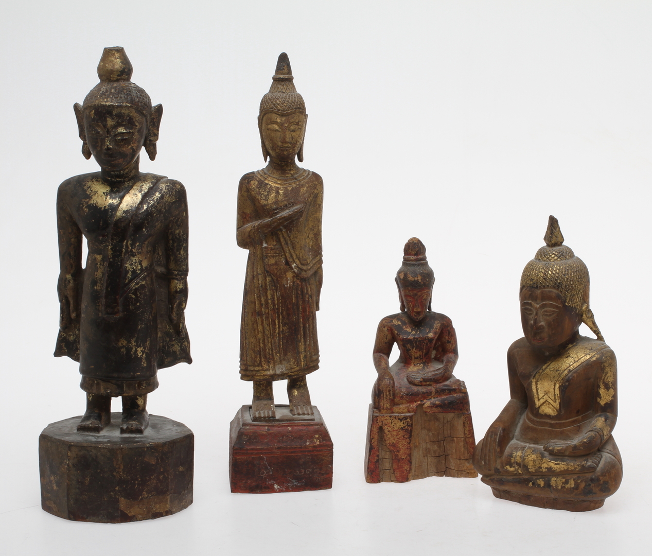 51965. BUDDHOR, 4 stk, skåret og patineret træ.
