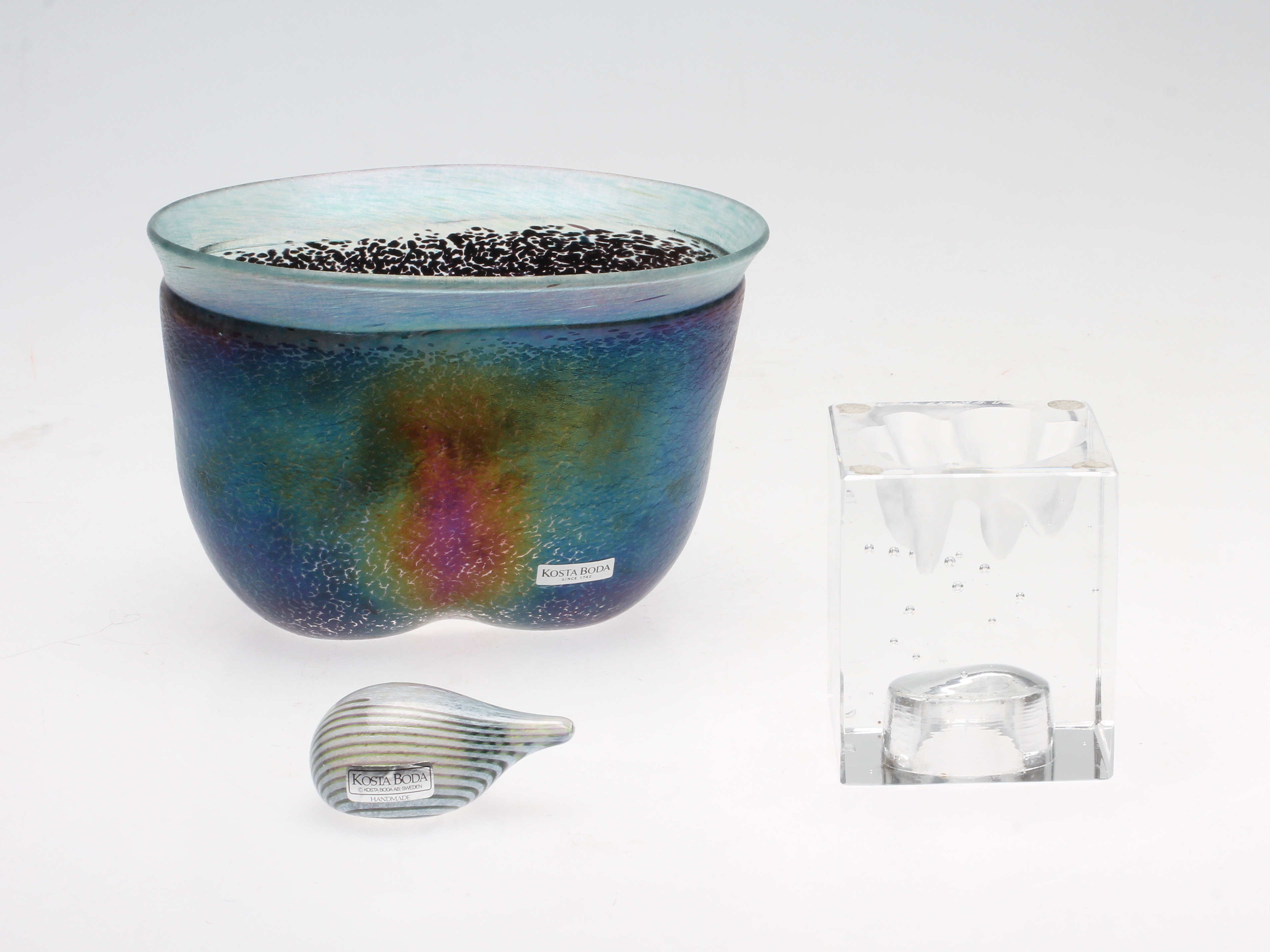 520148. GLASOBJEKTER, 3 dele, Bertil Vallien, Kosta.