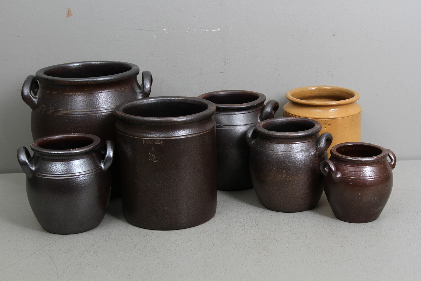52080. KRUKOR 7 stk, keramik, bl.a. Höganäs.
