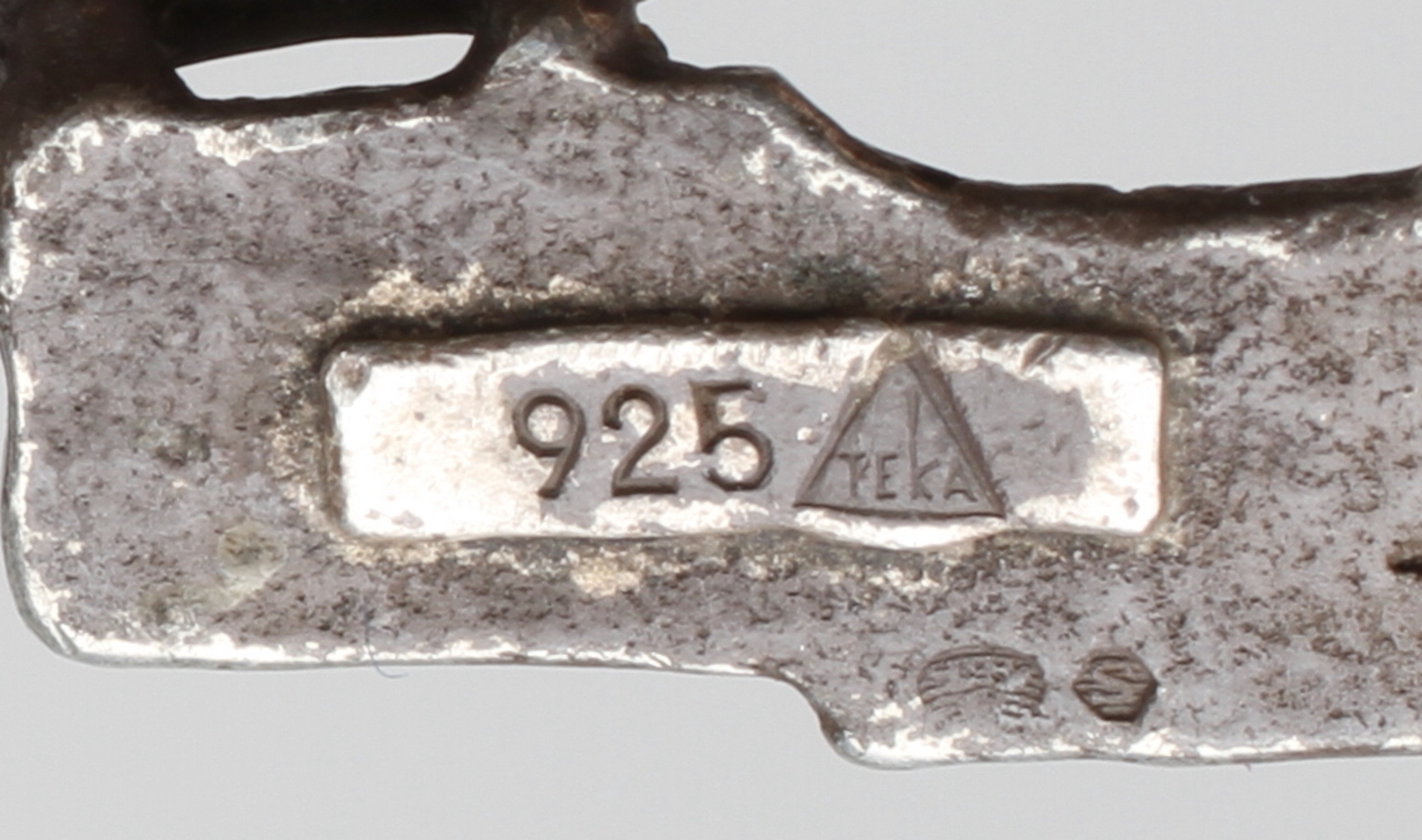 52112. SMYKKER, 4 dele, sølv, vedhæng, broche, ring. 1900-/2000-tallet.