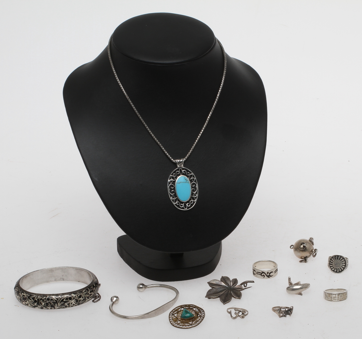 52145. SMYKKER sølv, 12 dele, 20. århundrede.