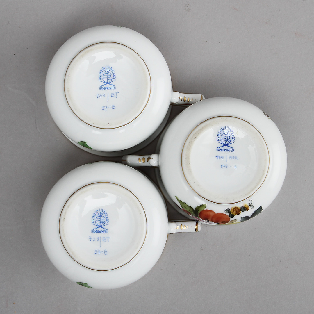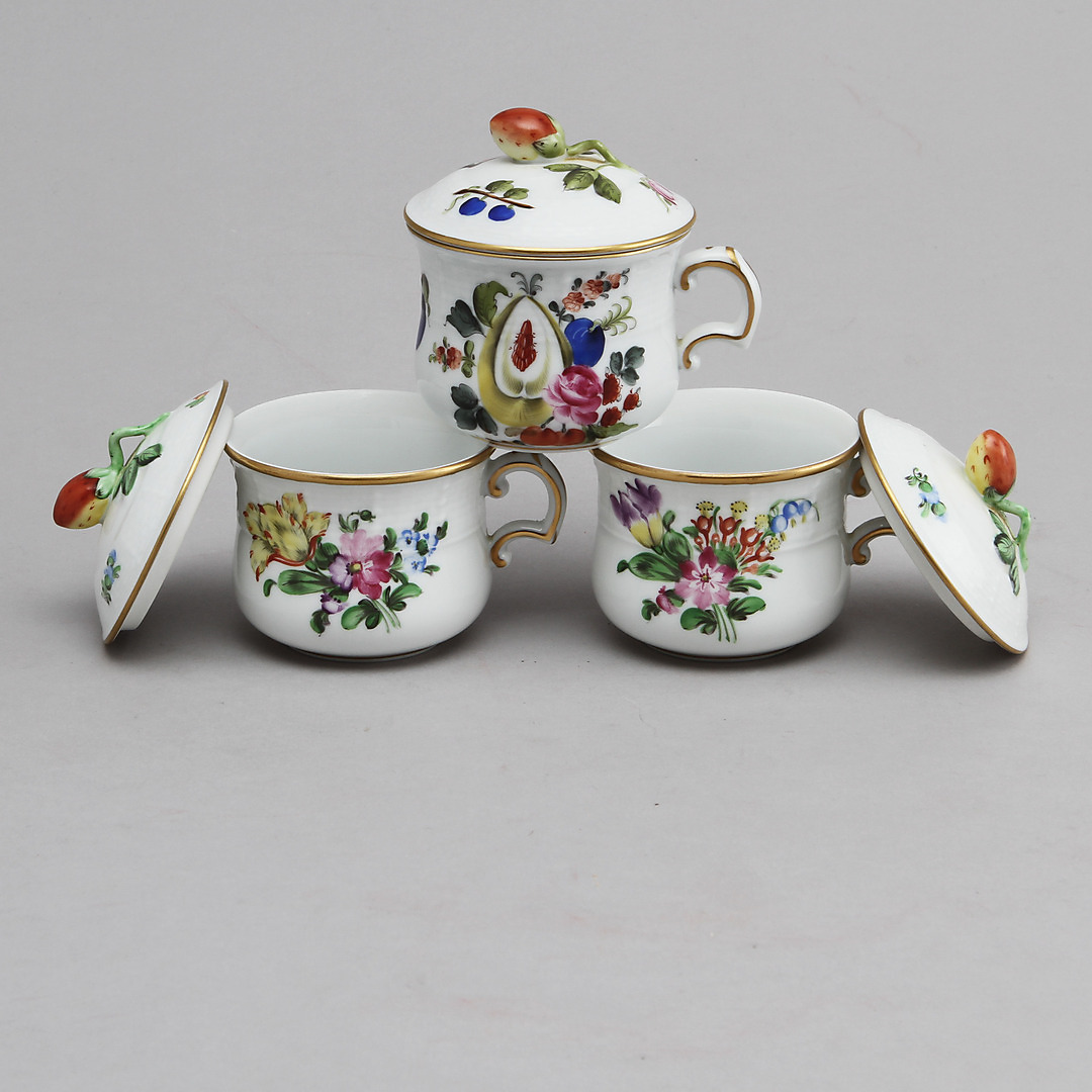 521624. CREMEKOPPER, 3 stk, porcelæn, Herend, Ungarn.