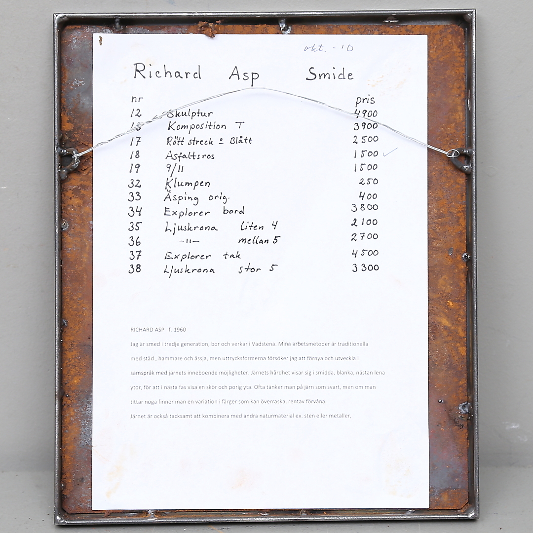 522345. RICHARD ASP. "Asfalt Rose". Jernbræt, usigneret.