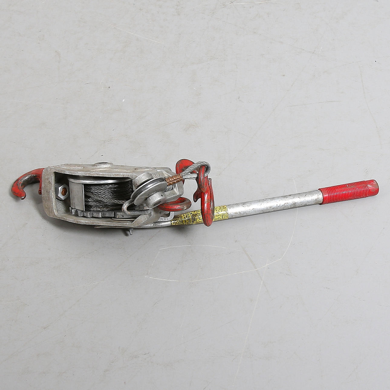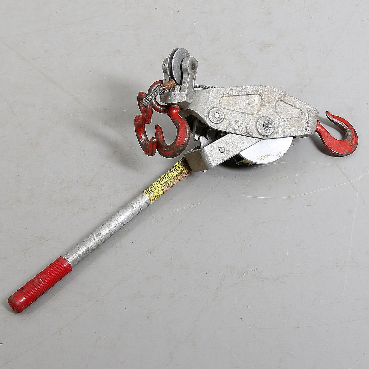 Håndtagsløfteblok med wire, løftekapacitet enkeltreb 500kg, dobbeltreb 1000kg. Løftehøjde enkelt reb 9m, dobbelt reb 4,5m. Vægt 6,3 kg. Længde 70 cm.