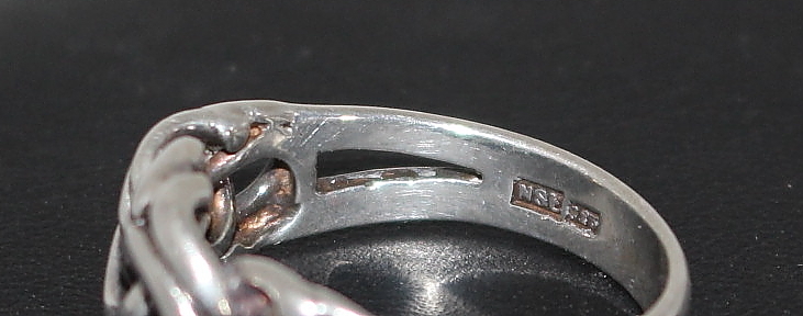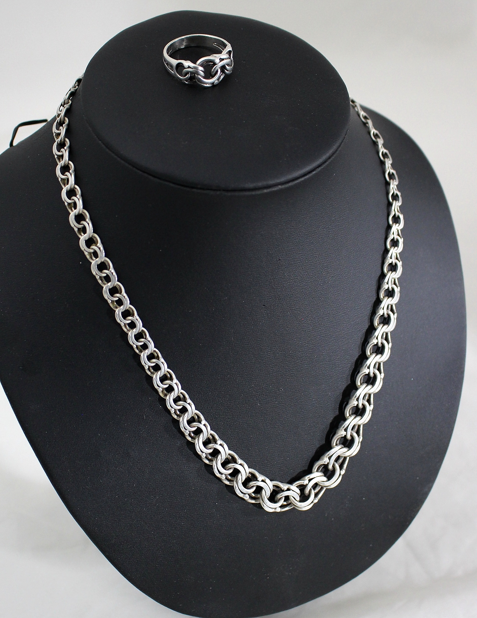 523409. RING OG HALSKÆDE, sølv, doseret bismark GFAB.