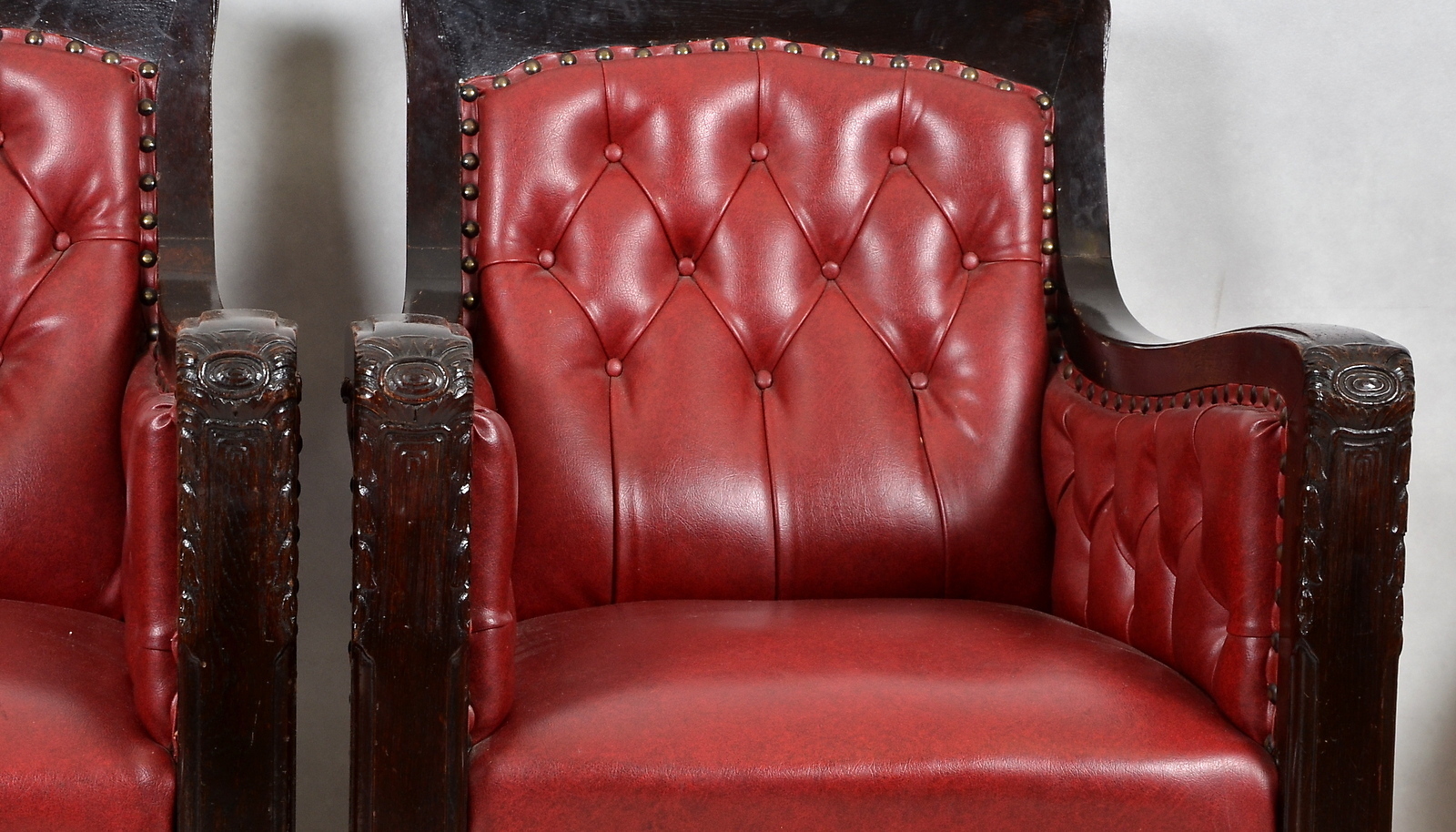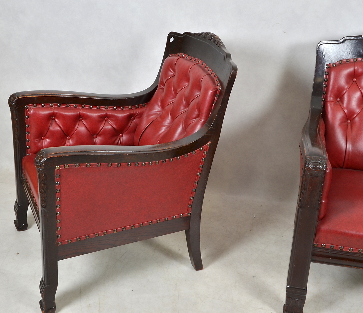 523607. LÆNESTOLE, 1 par, træ og læder, 1900-tallet.