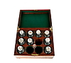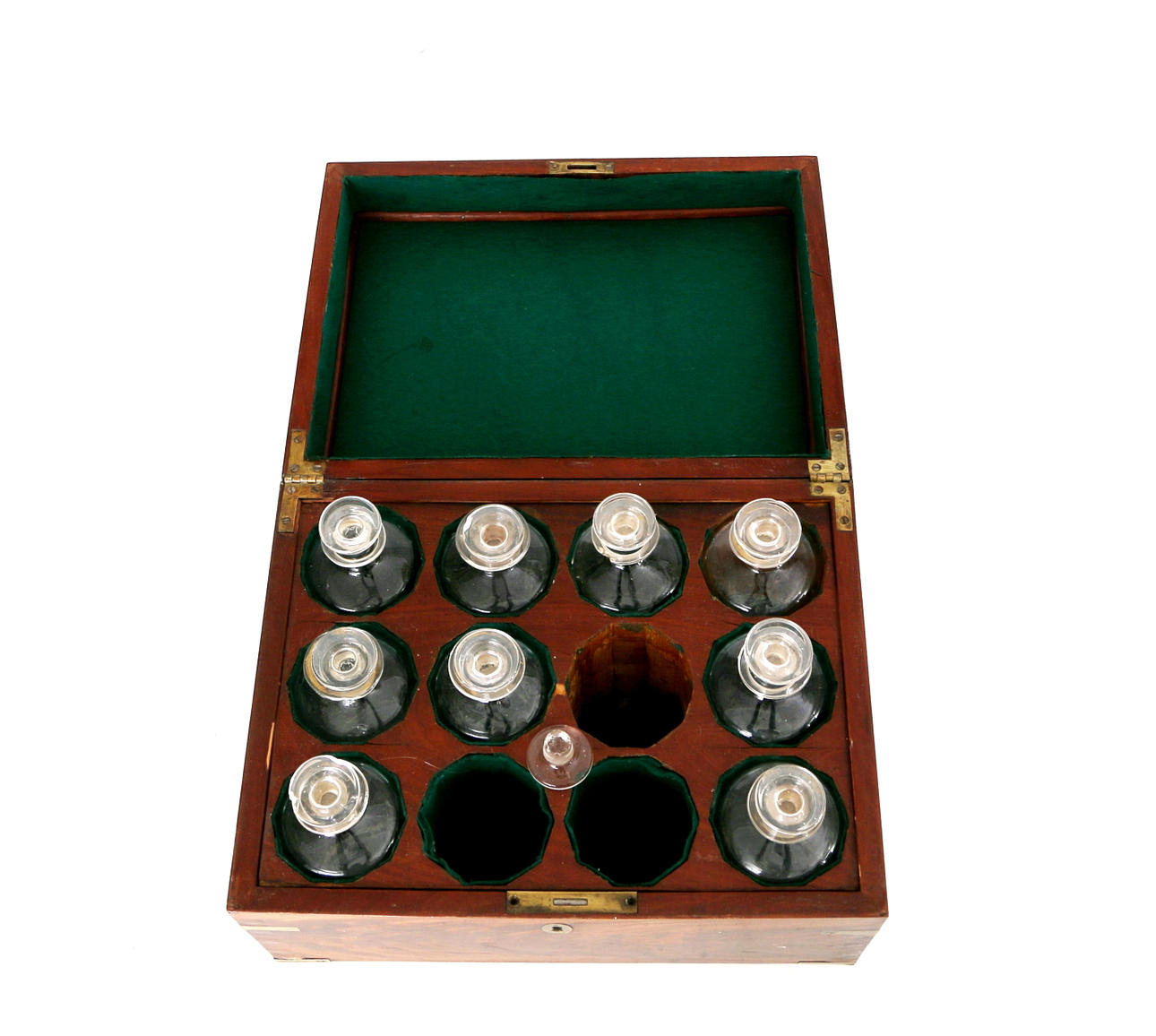 Alder og Brugsslitage. Tørre revner. Kantstødt. Løs messing skive. Der mangler flasker.