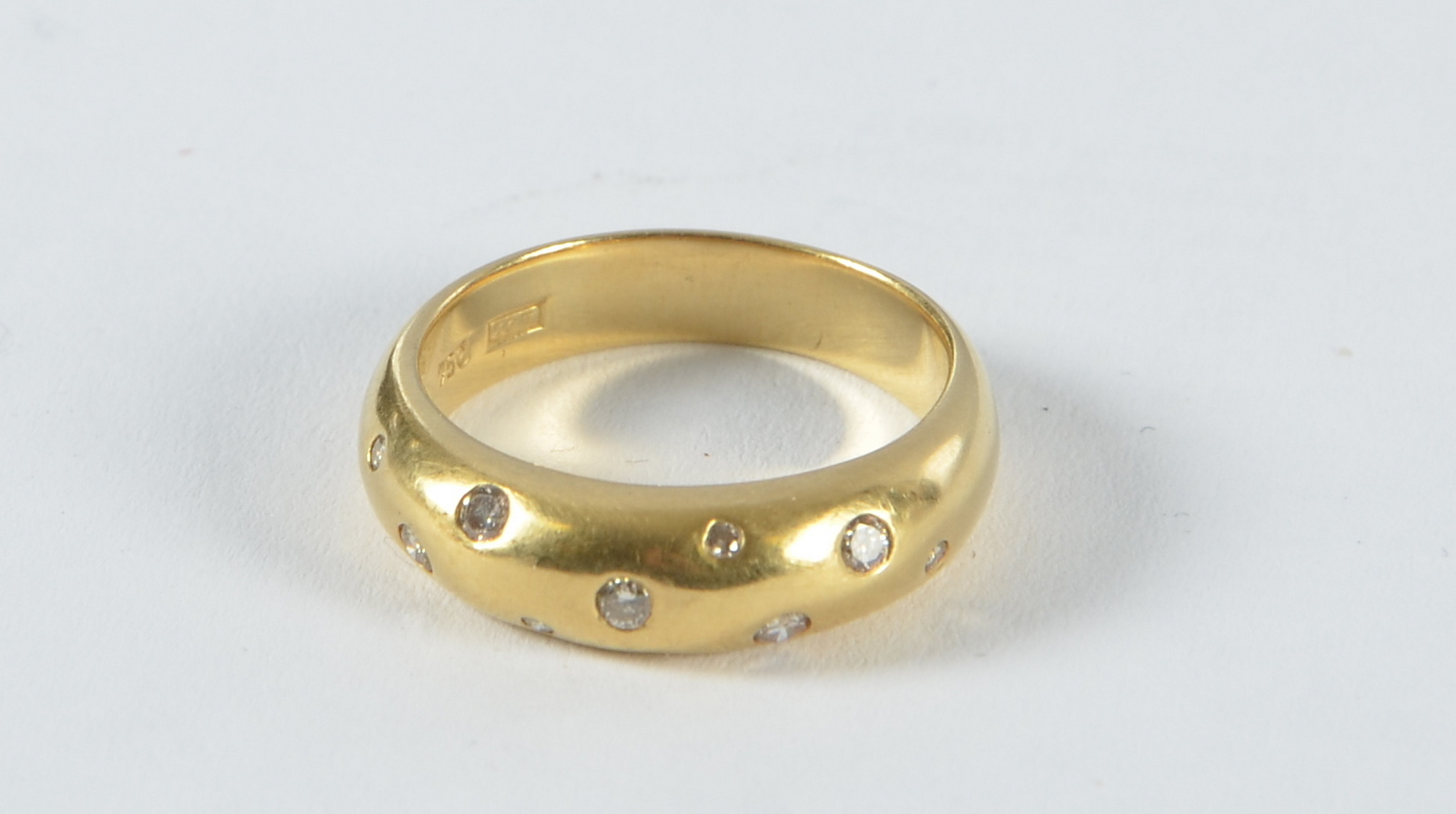 524372. DIAMANTRING 18K, samlet ca 0,20ct.