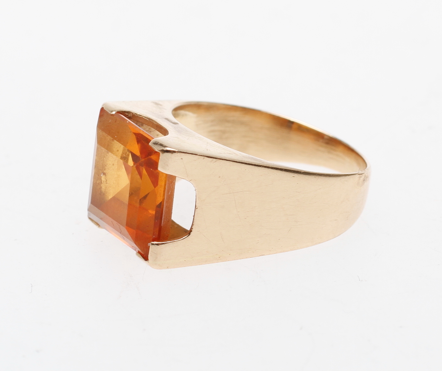 52441. RING, 18k guld, med cognacfarvet sten, i alt 5,7 gr.