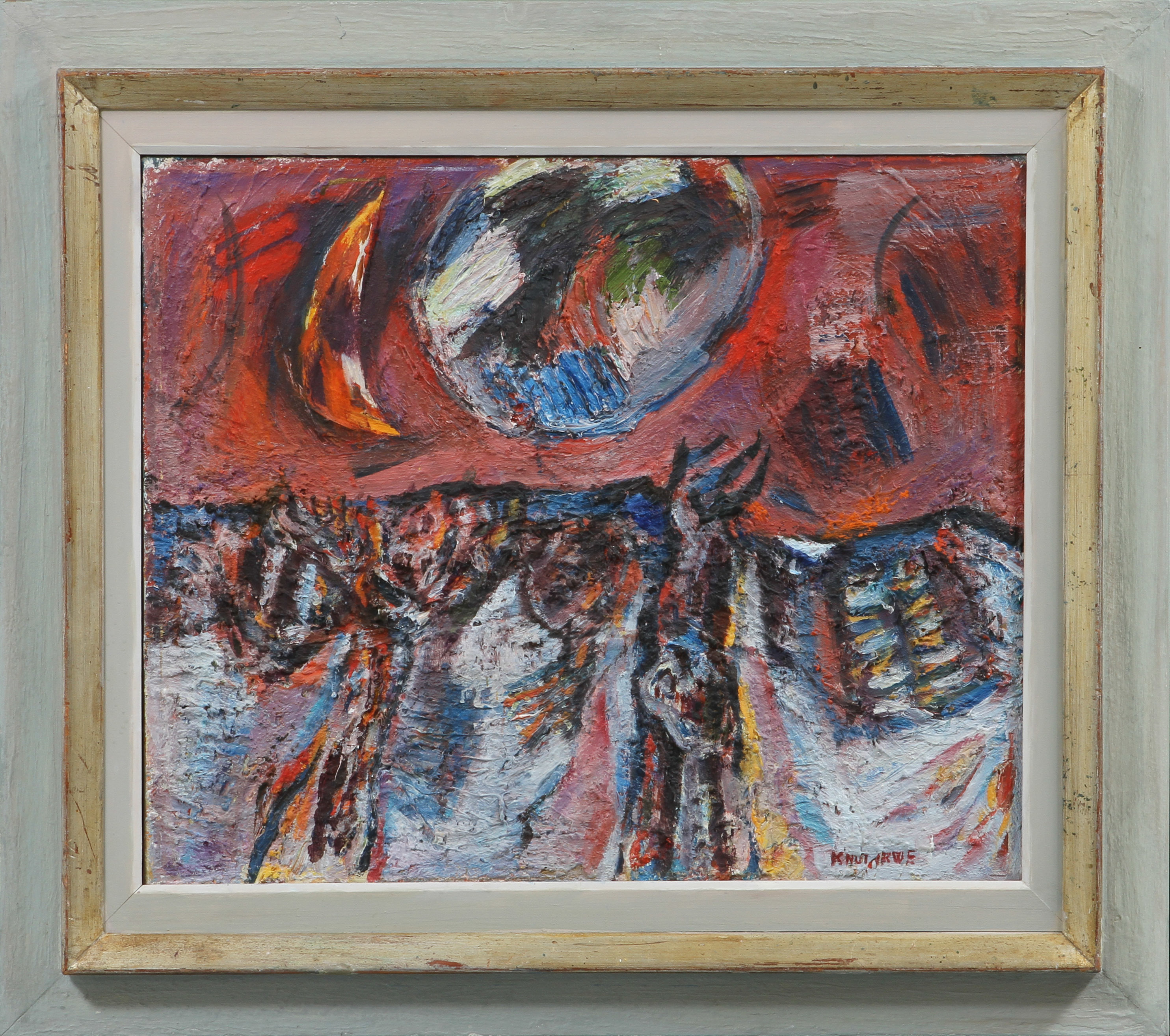 524455. KNUT IRWE. Komposition, olie på lærred, signeret.