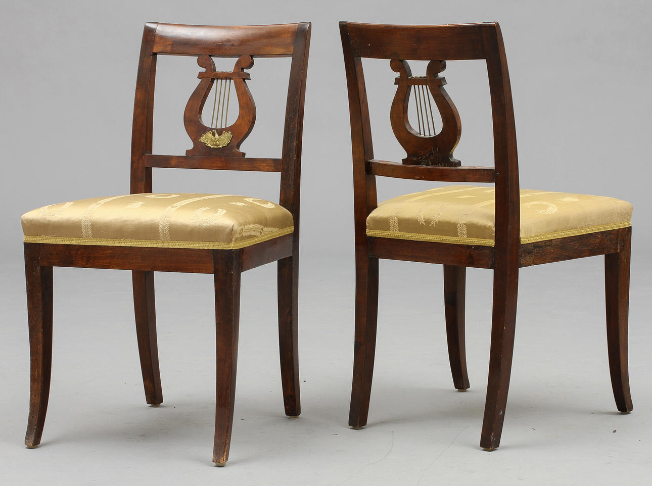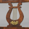 Mahogni, bagside med dekoration af lyre.