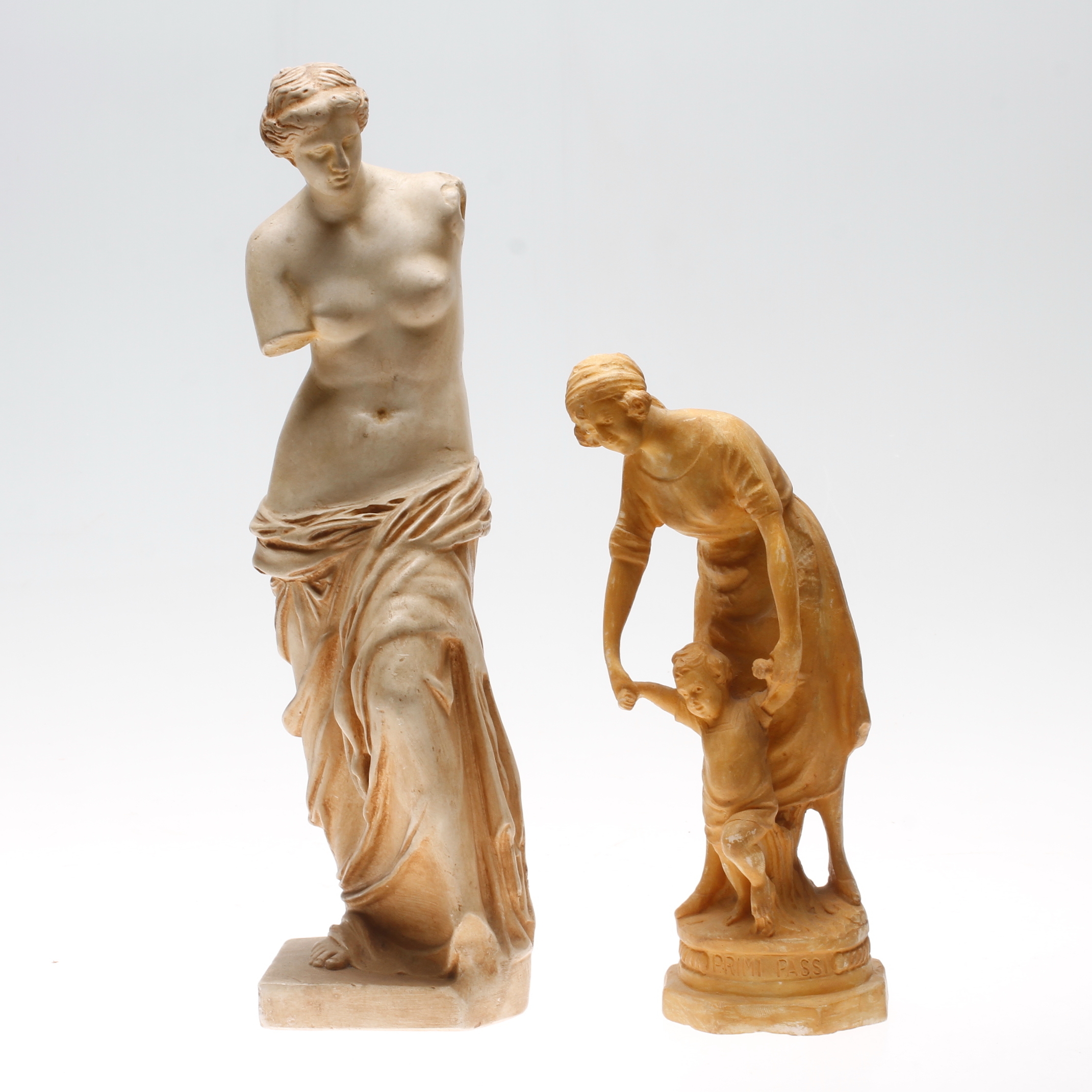 524922. OIDENTIFIERAD KONSTNÄR. Skulpturer, 2 stk, gips, usigneret.