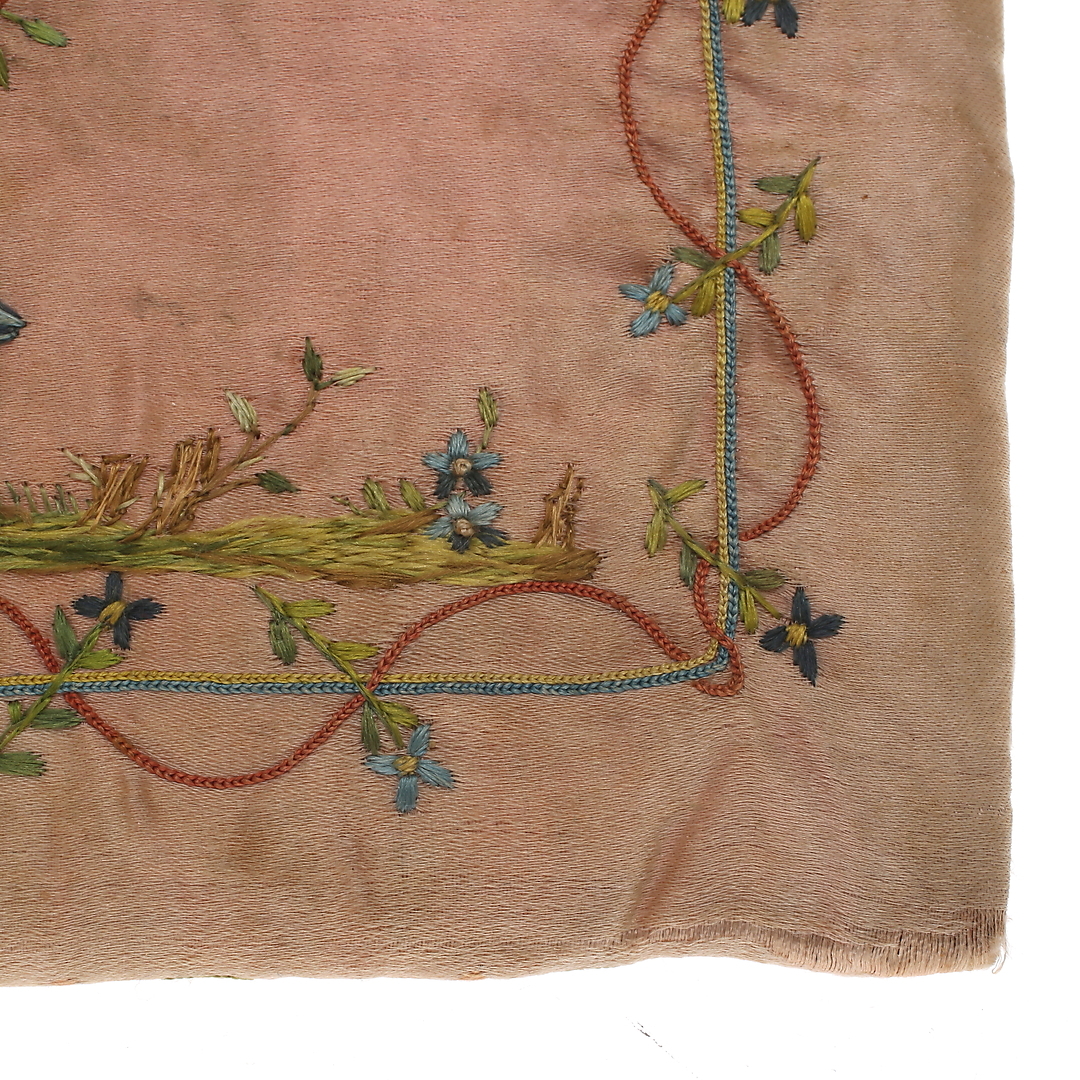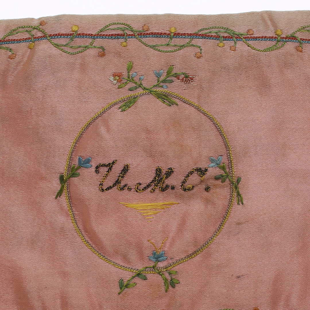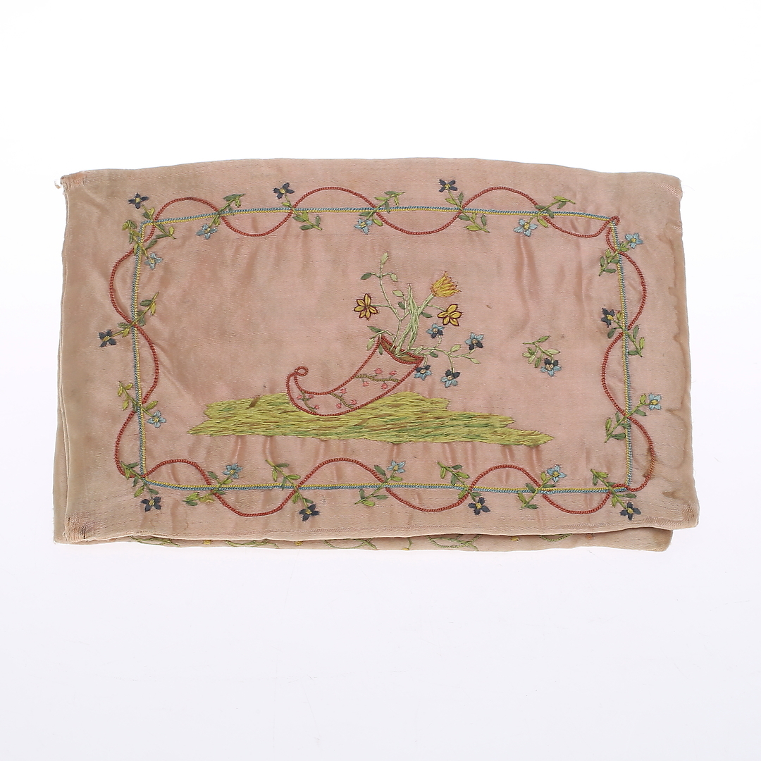 525487. PENGE OG TASKE, broderet silke, 1797.
