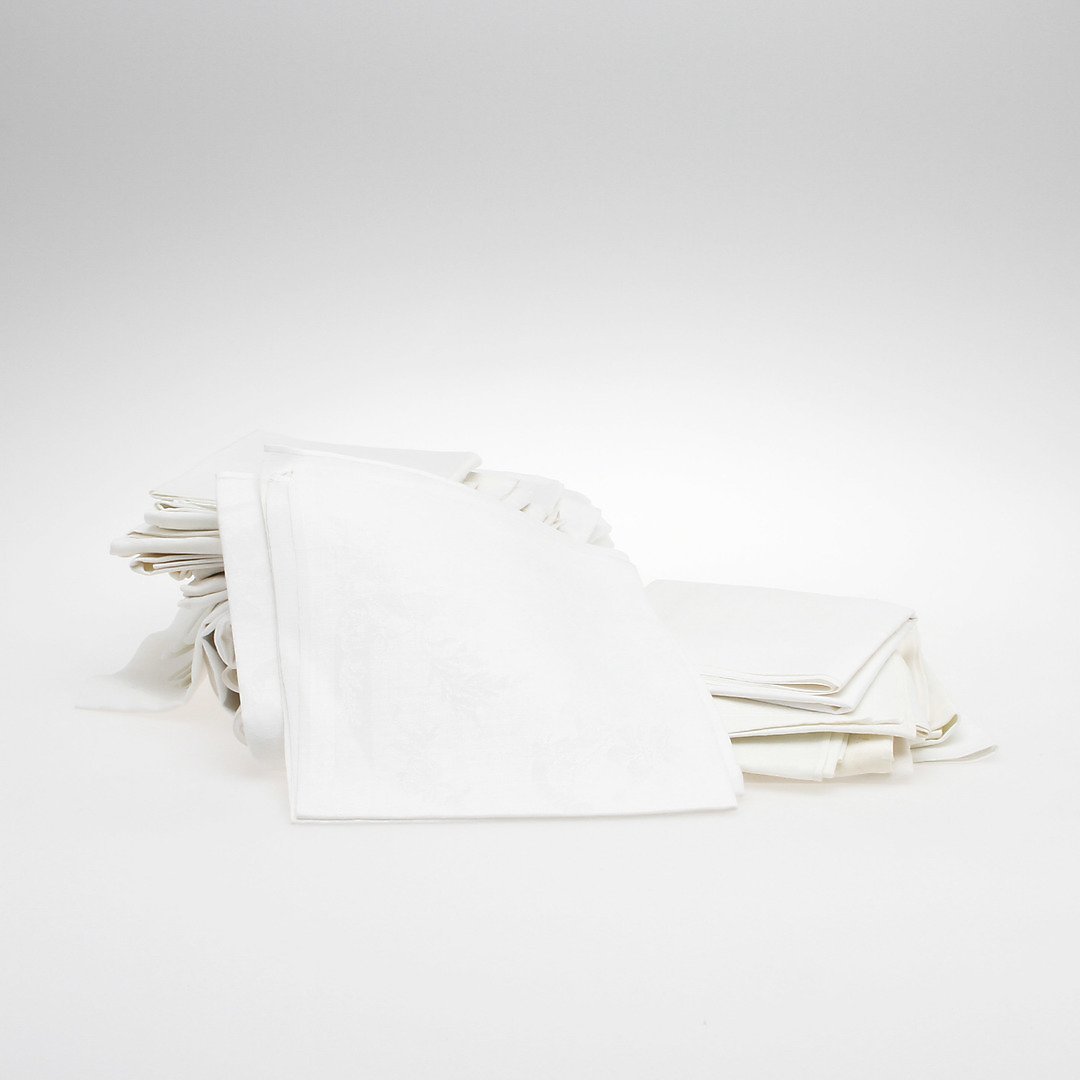 526835. DAMASKUS af linned, 3 duge og 16 SERVIETTER.