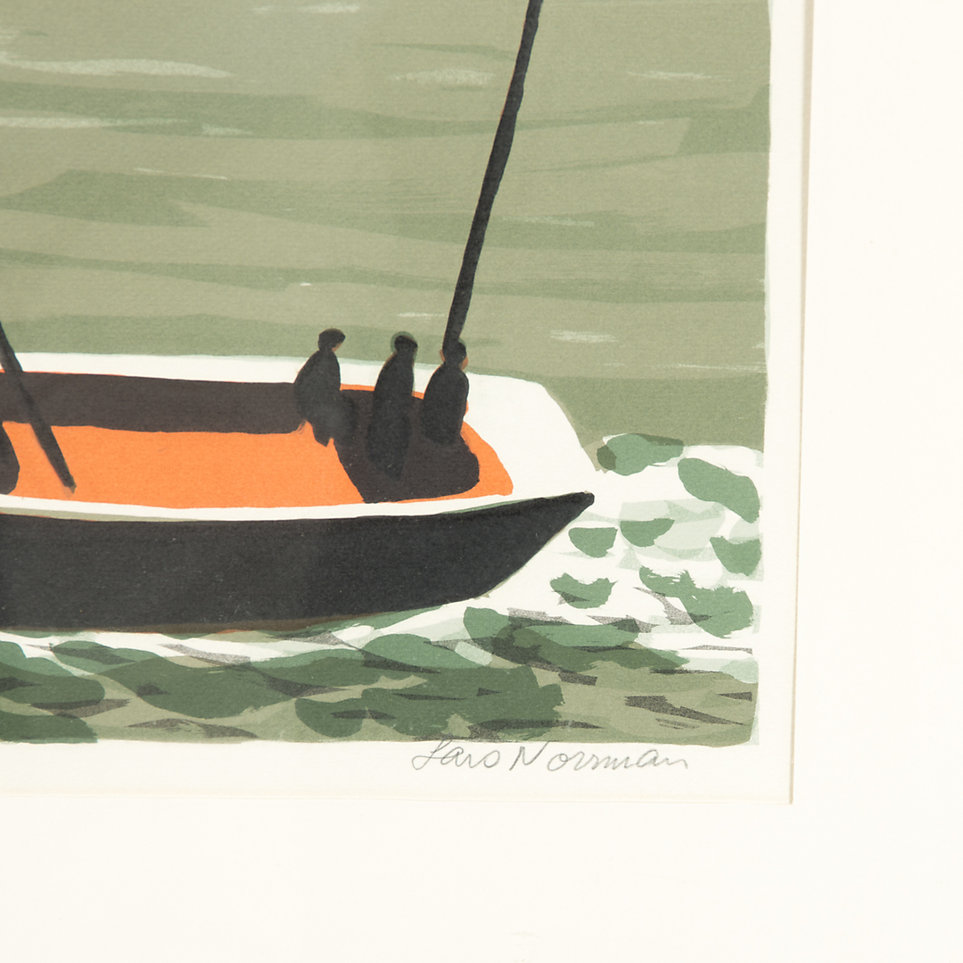 526879. LARS NORRMAN. Båd, farvelitografi, signeret.