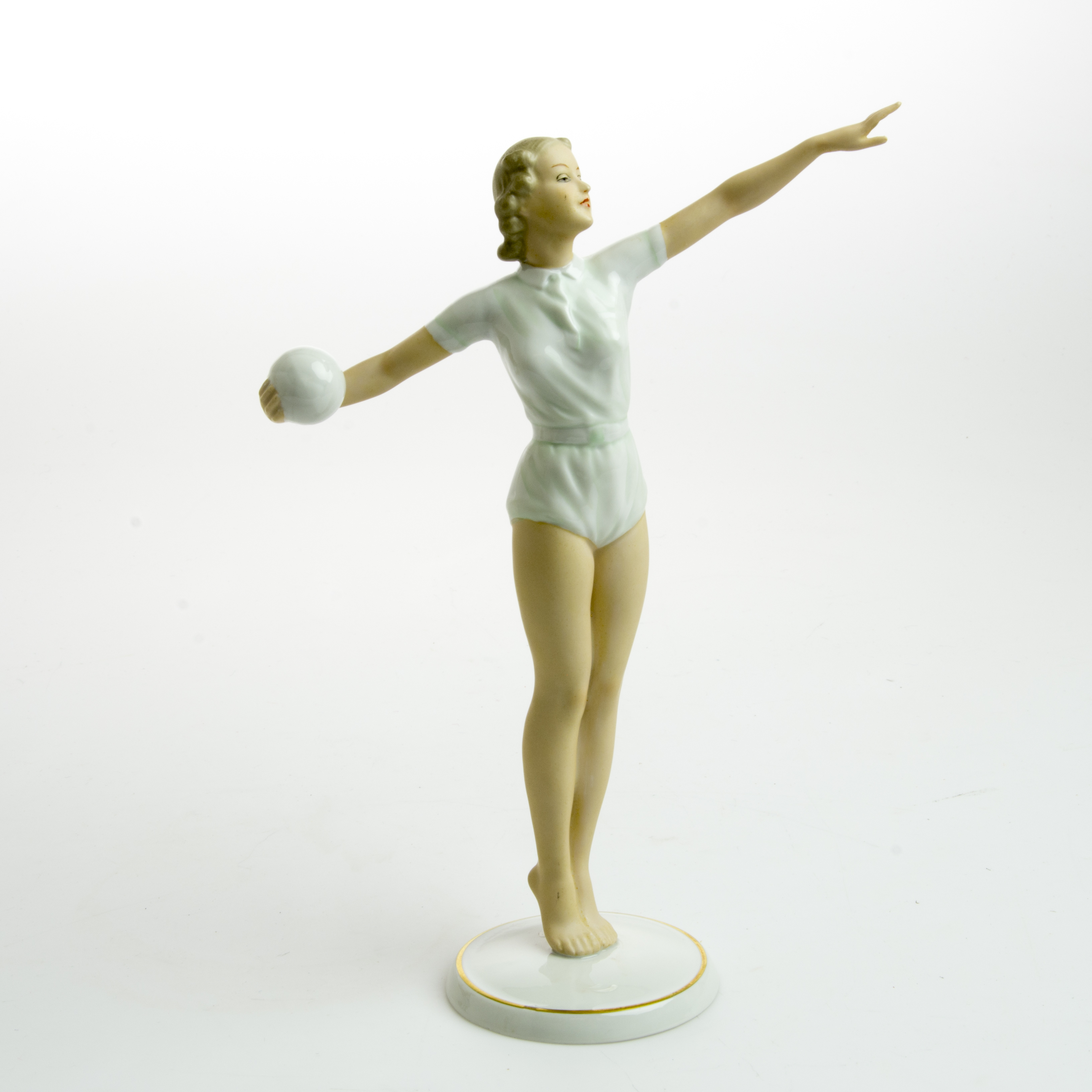 527136. FIGUR, kvinde med bold, Wallendorf.