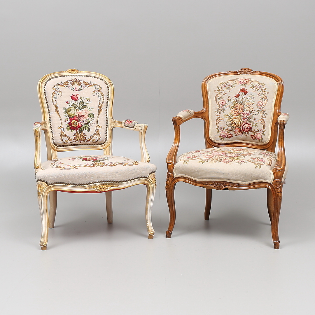 527579. LÆNESTOLE, 2 stk, rokokostil, 1900-tallet.