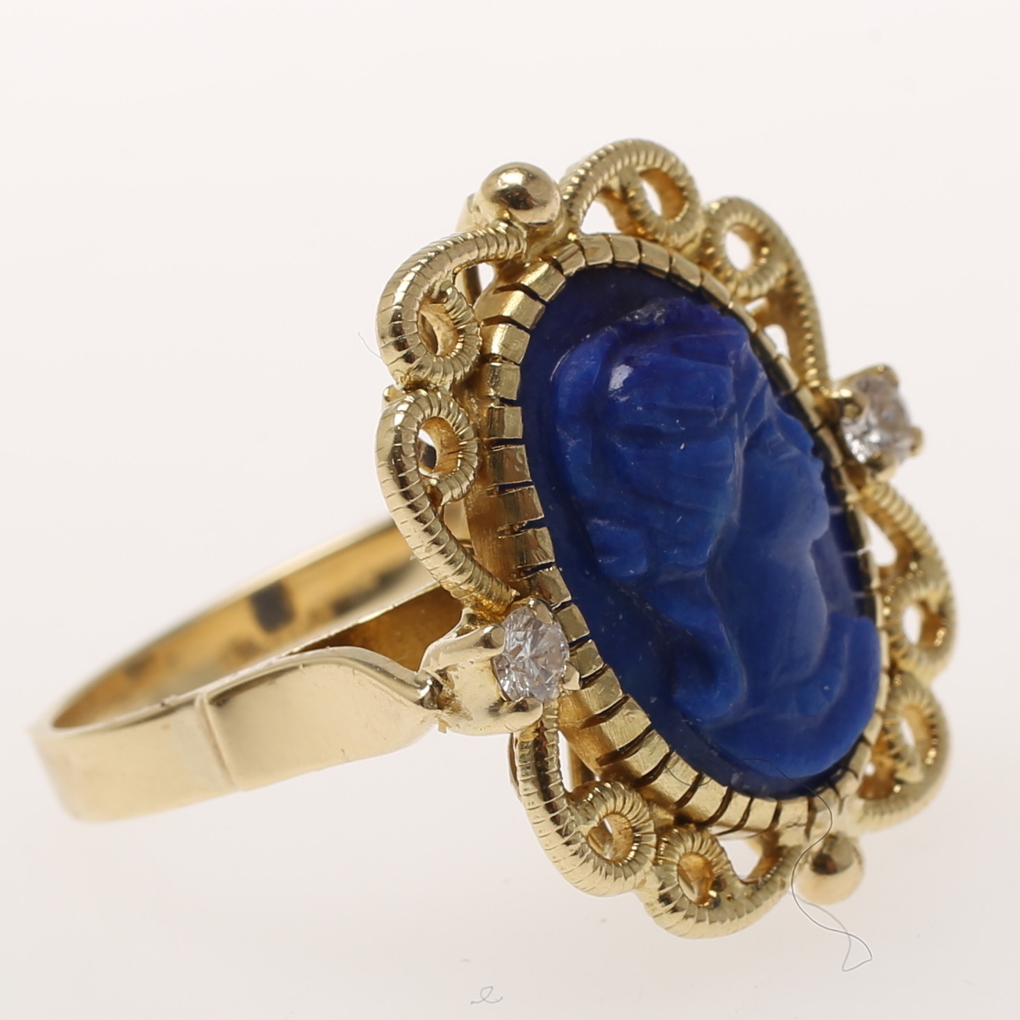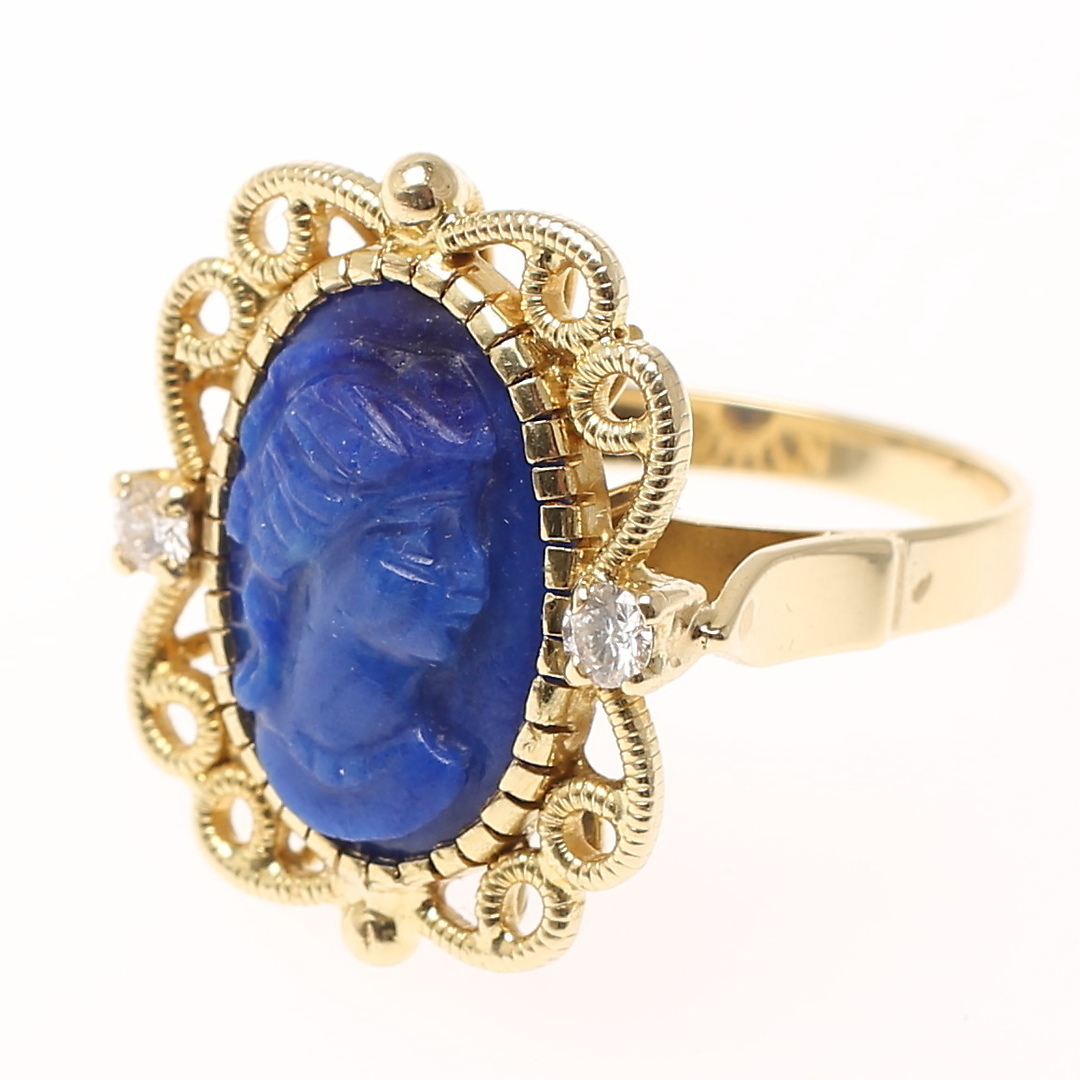 528597. LAPIS RING med 2 brillanter, 14 karat guld.