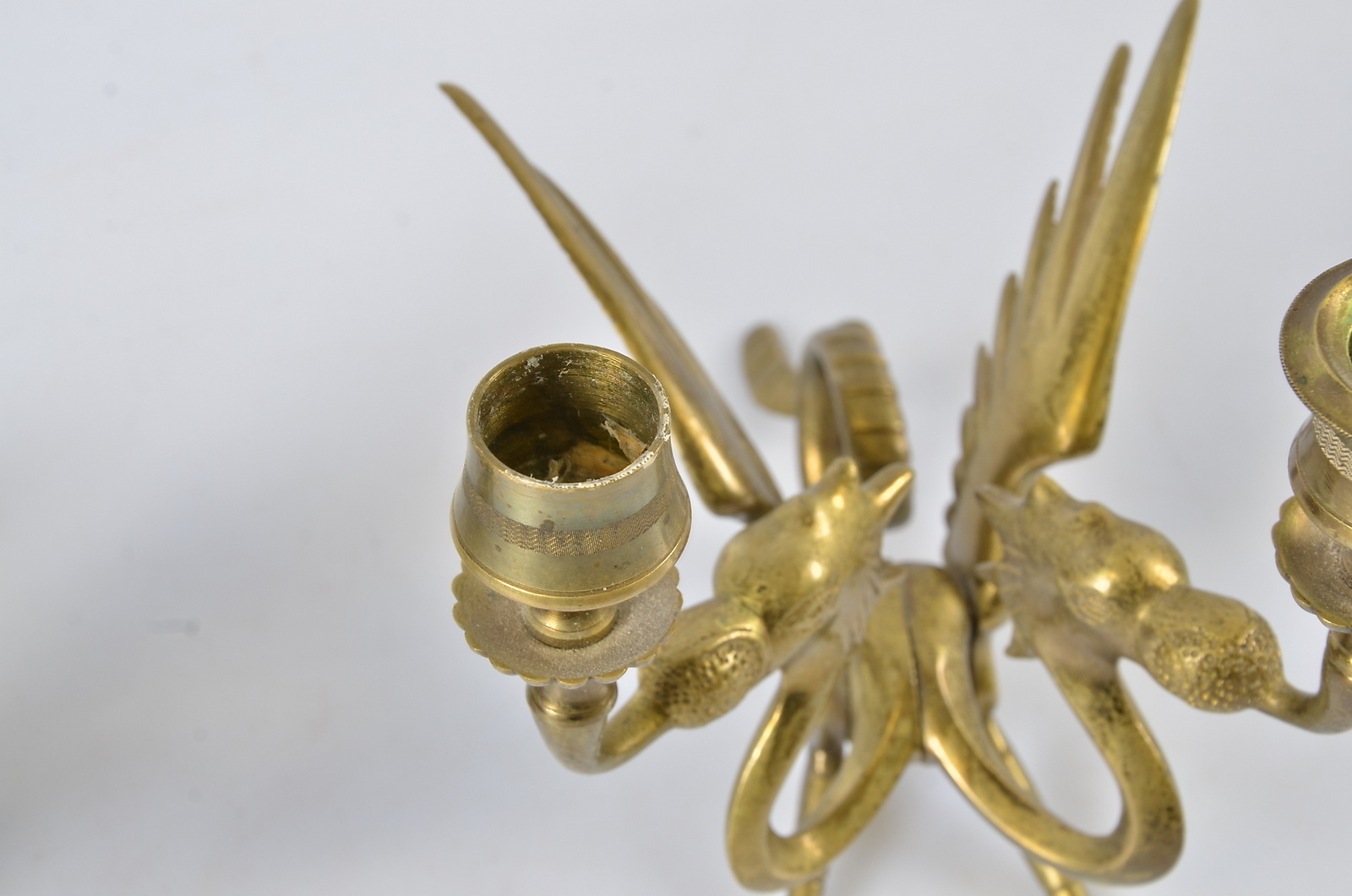 529485. Lysestager, 1 par, messing, 1900-tallet.