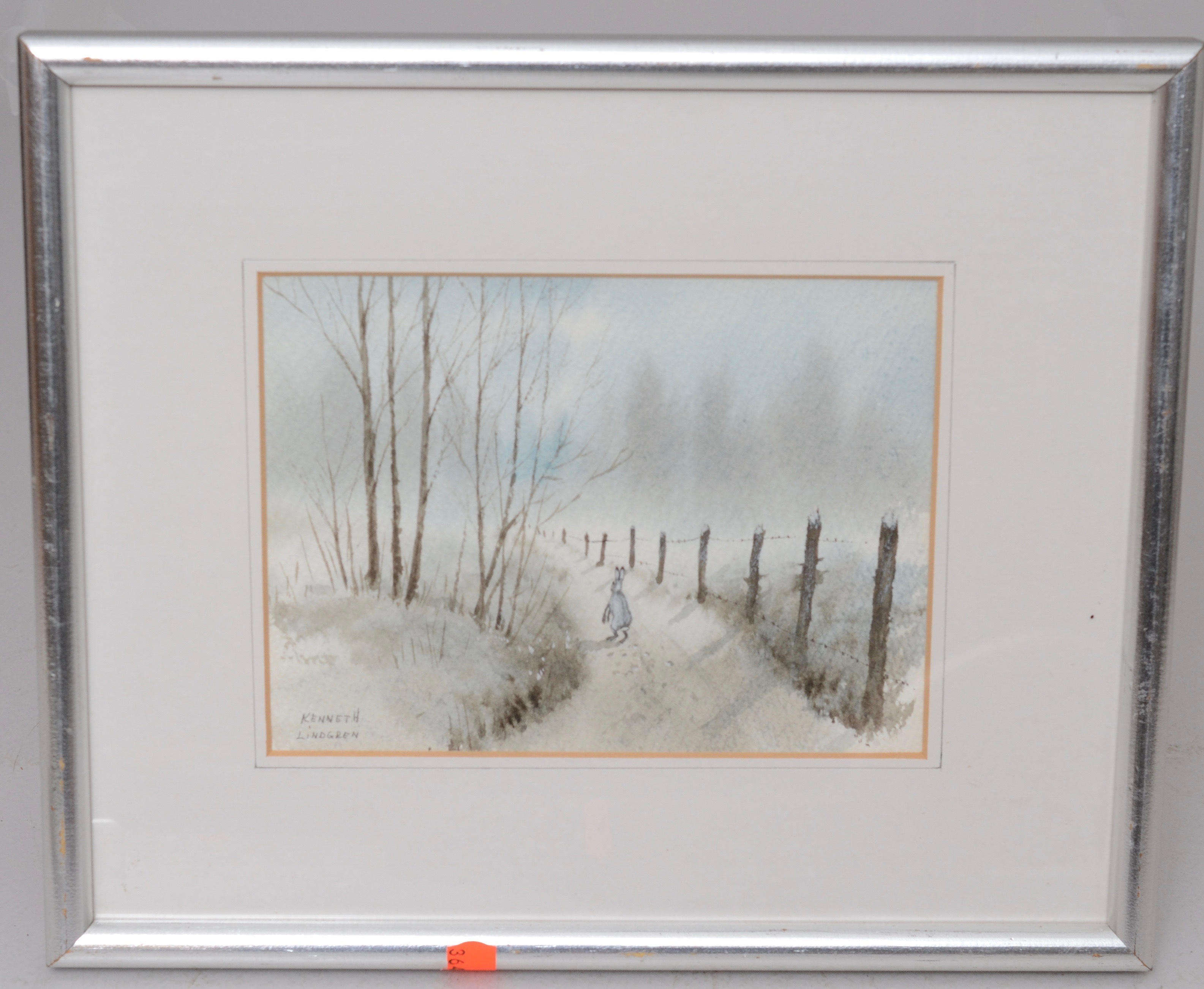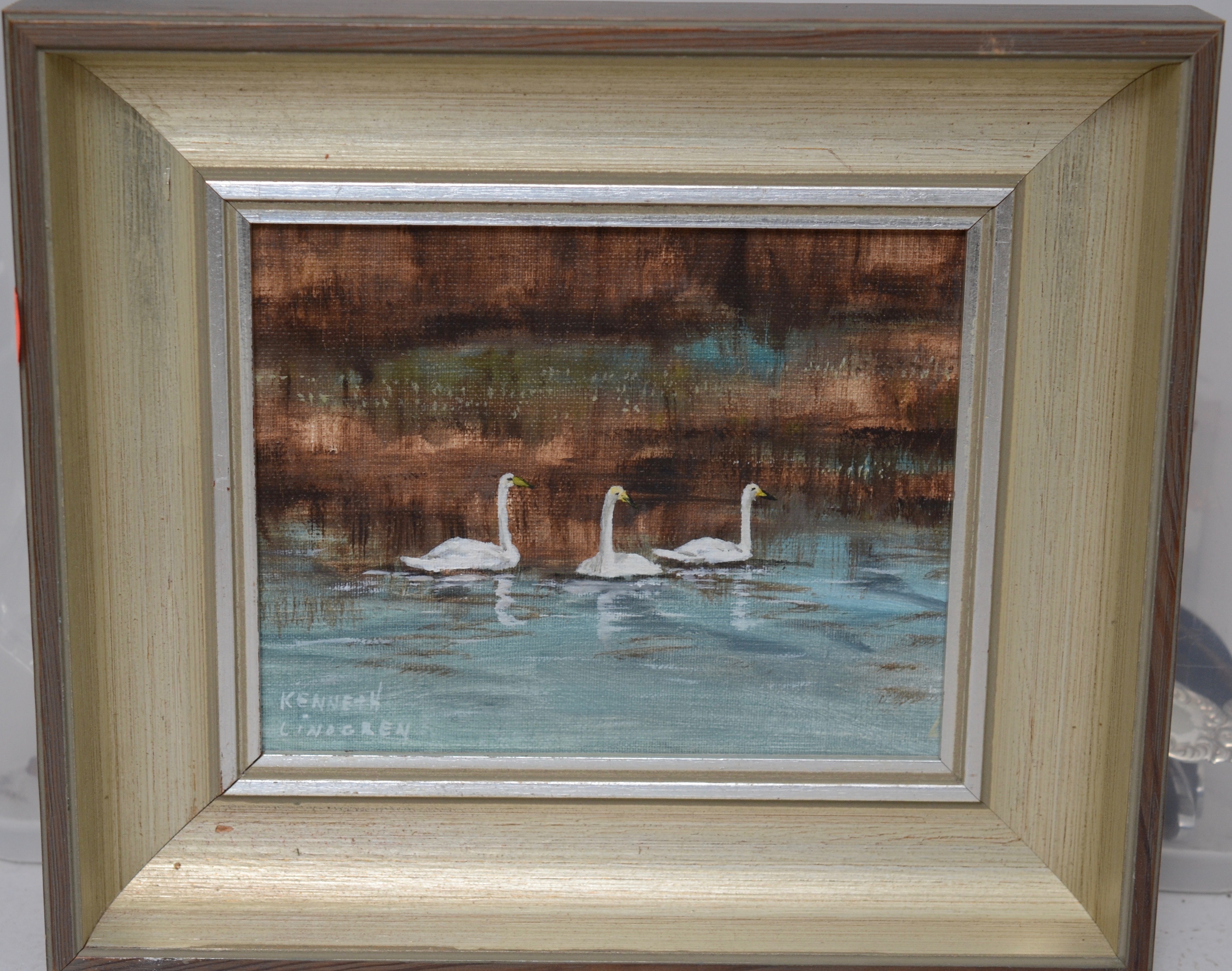 531226. KENNETH LINDGREN. OLIE PÅ LÆRRED. TRE STK. MALERIER.