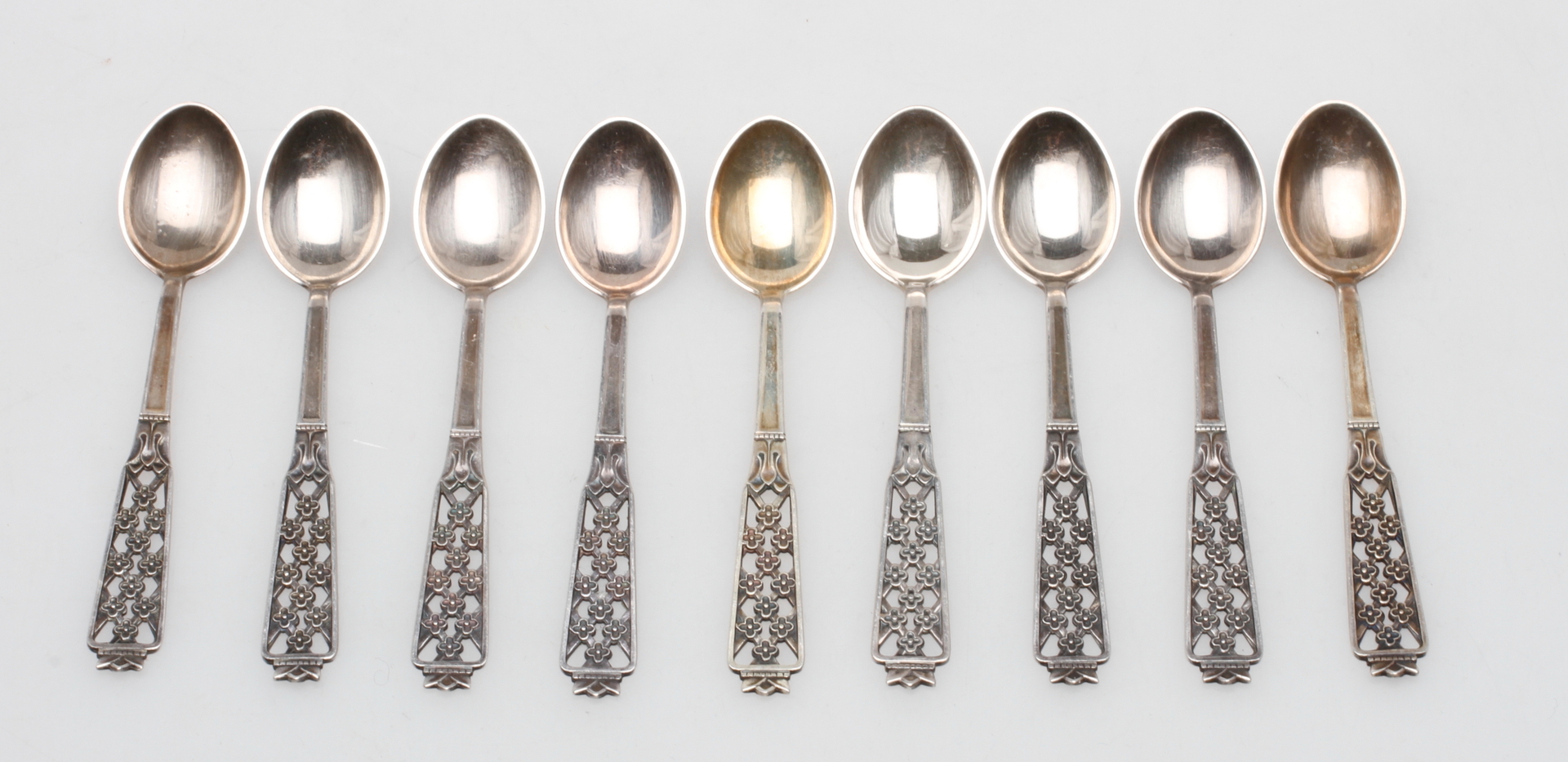 53157. KAFFESKERE, 9 stk, sølv, ca. 80 gram.